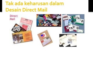 Dokumen ini menjelaskan sistem fundraising interaktif menggunakan media komunikasi untuk mengumpulkan donasi. Dijelaskan juga tentang efektivitas direct mail dalam meningkatkan sumbangan, serta strategi dalam penyampaian surat izin yang menarik bagi donatur. Penekanan pada keuntungan bagi donatur serta pentingnya presentasi yang menarik dalam pengiriman surat juga diuraikan.