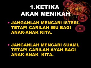 Dokumen ini memberikan panduan tentang prinsip-prinsip membangun keluarga Muslim yang harmonis, mulai dari pemilihan pasangan hingga pendidikan anak. Ia menekankan pentingnya ketaatan kepada Allah, komunikasi yang baik, dan cinta yang sepenuh hati antara suami dan istri. Selain itu, dokumen juga mengingatkan bahwa setiap perjalanan keluarga tidak selalu mulus dan perlu usaha serta pengertian dari kedua belah pihak.