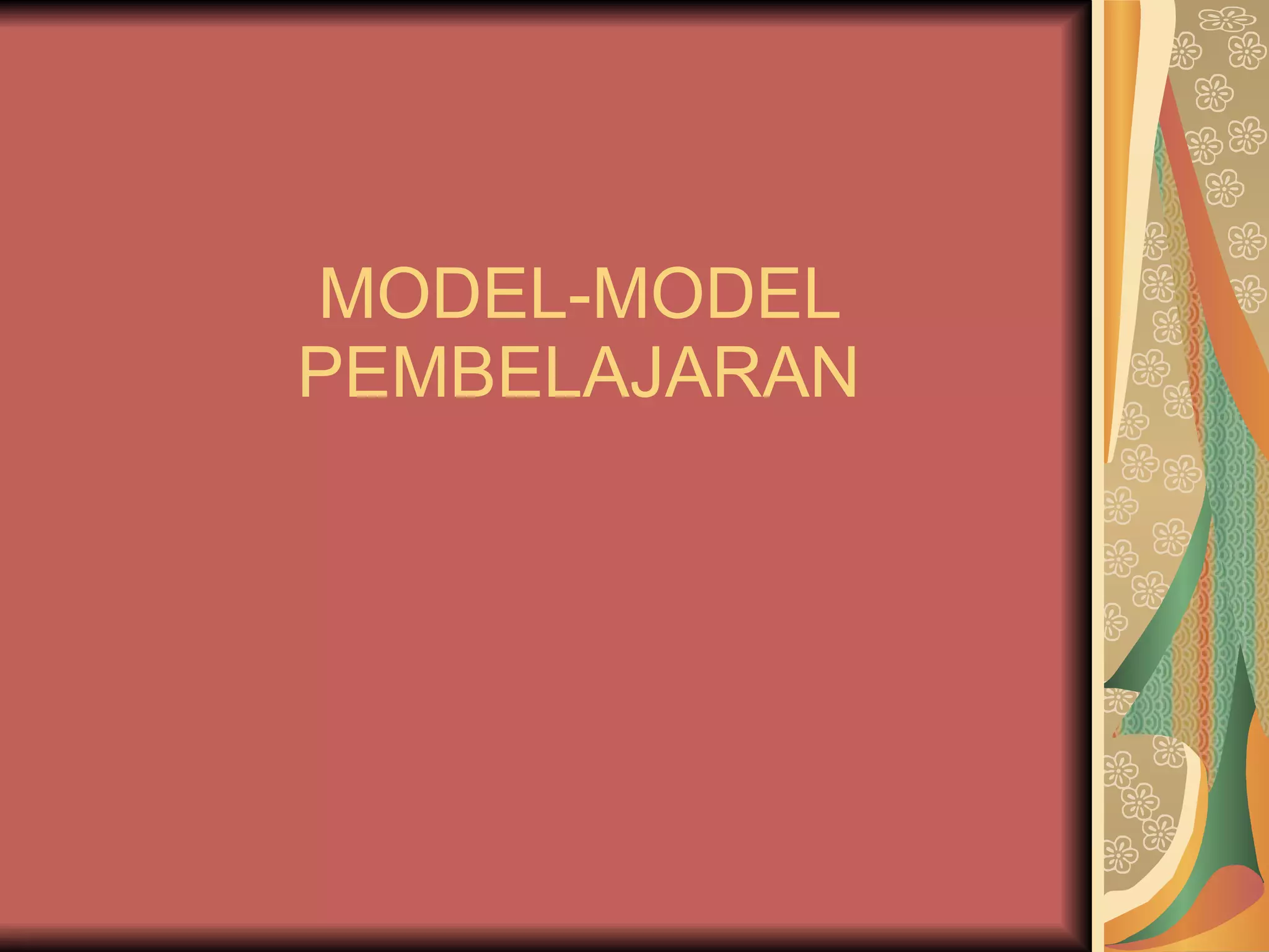 Dokumen ini membahas berbagai model pembelajaran yang relevan dari perspektif berbagai teori belajar seperti behaviorisme, konstruktivisme, dan humanisme, serta penekanan pada pentingnya interaksi sosial dan pengalaman dalam proses belajar. Teori-teori tersebut menggarisbawahi pentingnya pendekatan yang berpusat pada siswa dan kolaborasi dalam pembelajaran, serta bagaimana pengalaman pribadi mempengaruhi konstruksi pengetahuan. Selain itu, dokumen juga menyoroti metode pengajaran yang mendukung pemecahan masalah dan pembelajaran kontekstual yang terhubung dengan kehidupan sehari-hari.