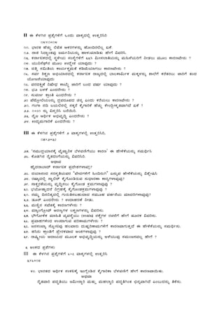 ¥Àæ±ÉßUÀ½UÉ MAzÀÄ ªÁPÀåzÀ°è GvÀÛj¹j 141=14 11. ¨sÁgÀvÀ ºÉZÀÄÑ °TvÀ DPÀgÀUÀ¼À£ÀÄß ºÉÆA¢gÀ°®è KPÉ. 12. £Áf ¹zÁÝAvÀªÀÅ dªÀÄð¤AiÀÄ£ÀÄß ºÁ¼ÀĪÀiÁrvÀÄ ºÉÃUÉ «ªÀj¹. 13. PÀ£ÁðlPÀzÀ°è ¸ÀܽÃAiÀÄ ¸ÀA¸ÉÜUÀ½UÉ 33% «ÄøÀ¯ÁwAiÀÄ£ÀÄß ªÀÄ»¼ÉAiÀÄjUÉ ¤ÃqÀ®Ä ªÀÄÆ® PÁgÀtªÉãÀÄ ? 14. AiÀÄĤ¸É¥sï£À ªÀÄÆ® GzÉÝñÀ AiÀiÁªÀÅzÀÄ ? 15. zÀwÛ ¸À«ÄwAiÀÄ PÁAiÀÄðPÀëªÀÄvÉ PÀrªÉÄAiÀiÁUÀ®Ä PÁgÀtªÉãÀÄ ? 16. ¸ÀªÀð ²PÀët C©üAiÀiÁ£ÀzÀ°è PÀ£ÁðlPÀ gÁdåzÀ°è ¨Á®PÁ«ÄðPÀ ªÀÄPÀ̼À£ÀÄß ±Á¯ÉUÉ PÀgÉvÀgÀ®Ä eÁjUÉ vÀAzÀ AiÉÆÃd£ÉAiÀiÁªÀÅzÀÄ 17. ªÀgÀzÀQëuÉ ¤µÉÃzsÀ PÁAiÉÄÝ eÁjUÉ §AzÀ ªÀµÀð AiÀiÁªÀÅzÀÄ ? 18. ¨sÀÆ §¼ÀPÉ JAzÀgÉãÀÄ ? 19. ¸ÀĪÀtð PÁæAw JAzÀgÉãÀÄ ? 20 ¥ÉmÉÆæÃ°AiÀÄA£ÀÄß zÀæªÀgÀÆ¥ÀzÀ a£Àß JAzÀÄ PÀgÉAiÀÄ®Ä PÁgÀtªÉãÀÄ ? 21. UÀAUÁ £À¢ §AiÀİ£À°è ¸ÀPÀÌgÉ PÉÊUÁjPÉ ºÉZÀÄÑ PÉÃA¢æÃPÀÈvÀªÁVzÉ KPÉ ? 22. 1+01 £ÀÄß «¸ÀÛj¹ §gɬÄj. 23. £ÉÊd DyðPÀ C©üªÀÈ¢Þ JAzÀgÉãÀÄ ? 24. GzÀåªÀÄUÁjPÉ JAzÀgÉãÀÄ ? III F PɼÀV£À ¥Àæ±ÉßUÀ½UÉ 2 ªÁPÀåUÀ¼À°è GvÀÛj¹j, 152=30 25. `¸ÀªÀÄÄzÀæAiÀiÁ£ÀPÉÌ ªÉÊeÁÕ¤PÀ ¨É¼ÀªÀtÂUÉAiÀÄÄ PÁgÀt’ F ºÉýPÉAiÀÄ£ÀÄß ¸ÀªÀÄyð¹ 26. PÉÆqÀV£À gÉÊvÀzÀAUÉAiÀÄ£ÀÄß «ªÀj¹j. CxÁªÀ ºÉÊzÀgÁ¨Ázï PÀ£ÁðlPÀ ¥ÀæzÉñÀUÀ¼ÁªÀÀÅ? 27. zÀAiÀiÁ£ÀAzÀ ¸ÀgÀ¸ÀéwAiÀĪÀgÀ “ªÉÃzÀUÀ½UÉ »A¢gÀÄV” J£ÀÄߪÀ ºÉýPÉAiÀÄ£ÀÄß «±Éèö¹ 28. gÀµÁåzÀ°è ¸ÁÖ°£ï PÉÊUÉÆArgÀĪÀ ¸ÀÄzsÁgÀuÁ PÁgÀåUÀ¼ÁªÀŪÀÅ? 29. ¸ÁPÀëgÀvÉAiÀÄ£ÀÄß ªÀÈ¢Þ¸À®Ä PÉÊUÉÆAqÀ PÀæªÀÄUÀ¼ÁªÀŪÀÅ ? 30. ¨sÀAiÉÆÃvÁàzÀ£É ¤UÀæºÀPÉÌ PÉÊUÉÆAqÀPÀæªÀÄUÀ¼ÁªÀŪÀÅ ? 31. £ÀªÀÄä ¢£À¤vÀåzÀ°è UÀÄgÀÄw¸À§ºÀÄzÁzÀ ¸ÀªÀÄÆºÀ ªÀvÀð£ÉAiÀÄ ªÀiÁzÀjUÀ¼ÁªÀŪÀÅ? 32. qÀÆ£ï JAzÀgÉãÀÄ ? GzÁºÀgÀuÉ ¤ÃqÀÄ. 33. ªÀÄtÂÚ£À ¸ÀªÉvÀPÉÌ PÁgÀtUÀ¼ÉãÀÄ ? 34. ªÀiÁåAUÉÆæÃªï CgÀtåUÀ¼À ®PÀëtUÀ¼À£ÀÄß «ªÀj¸ÀÄ. 35. ¨sËUÉÆÃ½PÀ ªÀiÁ»w ªÀåªÀ¸ÉÜAiÀÄÄ (GIS) £ÀPÉëUÀ¼À gÀZÀ£ÉUÉ ºÉÃUÉ ¥ÀÆgÀPÀ «ªÀj¸ÀÄ. 36. ¥ÀæªÁºÀUÀ½AzÀ GAmÁUÀĪÀ ¥ÀjuÁªÀÄUÀ¼ÉãÀÄ ? 37. d£À¸ÀASÁå ¸ÉÆàÃlªÀÅ ºÀ®ªÁgÀÄ zÀĵÀàjuÁªÀÄUÀ½UÉ PÁgÀtªÁUÀÄvÀÛzÉ F ºÉýPÉAiÀÄ£ÀÄß ¸ÀªÀÄyð¸ÀÄ. 38. ºÀ¹gÀÄ PÁæAwUÉ ¥ÉæÃgÀPÀªÁzÀ CA±ÀUÀ¼ÁªÀŪÀÅ ? 39. gÁ¶ÖçÃAiÀÄ DzÁAiÀÄzÀ ªÀÄÆ®PÀ C©üªÀÈ¢ÝAiÀÄ£ÀÄß C¼ÉAiÀÄĪÀÅ ¸ÀªÀÄAd¸ÀªÀ®è ºÉÃUÉ ? 3 CAPÀzÀ ¥Àæ±ÉUÀ¼ÀÄ III F PɼÀV£À ¥Àæ±ÉßUÀ½UÉ 6-7 ªÁPÀåUÀ¼À°è GvÀÛj¹ 36=18 40. ¨sÁgÀvÀzÀ DyðPÀ ¸ÀAPÀlPÉÌ EAUÉèAr£À PÉÊUÁjPÁ ¨É¼ÀªÀtÂUÉ ºÉÃUÉ PÁgÀtªÁ¬ÄvÀÄ. CxÀªÁ gÉÊvÀªÁj ¥ÀzÀÞwAiÀÄÄ d«ÄãÁÝj ªÀÄvÀÄÛ ªÀĺÀ¯Áéj ¥ÀzÀÞwVAvÀ ©ü£ÀߪÁVzÉ JA§ÄzÀ£ÀÄß w½¸ÀÄ.