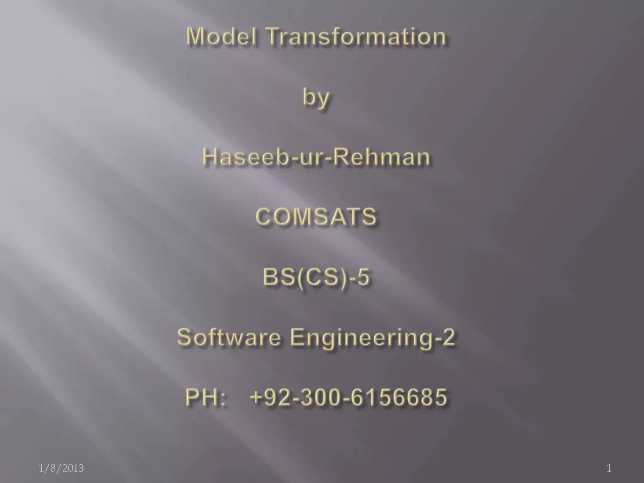 - Model transformations provide a mechanism to automatically create or update target models based on information in source models, such as generating code from a design model.