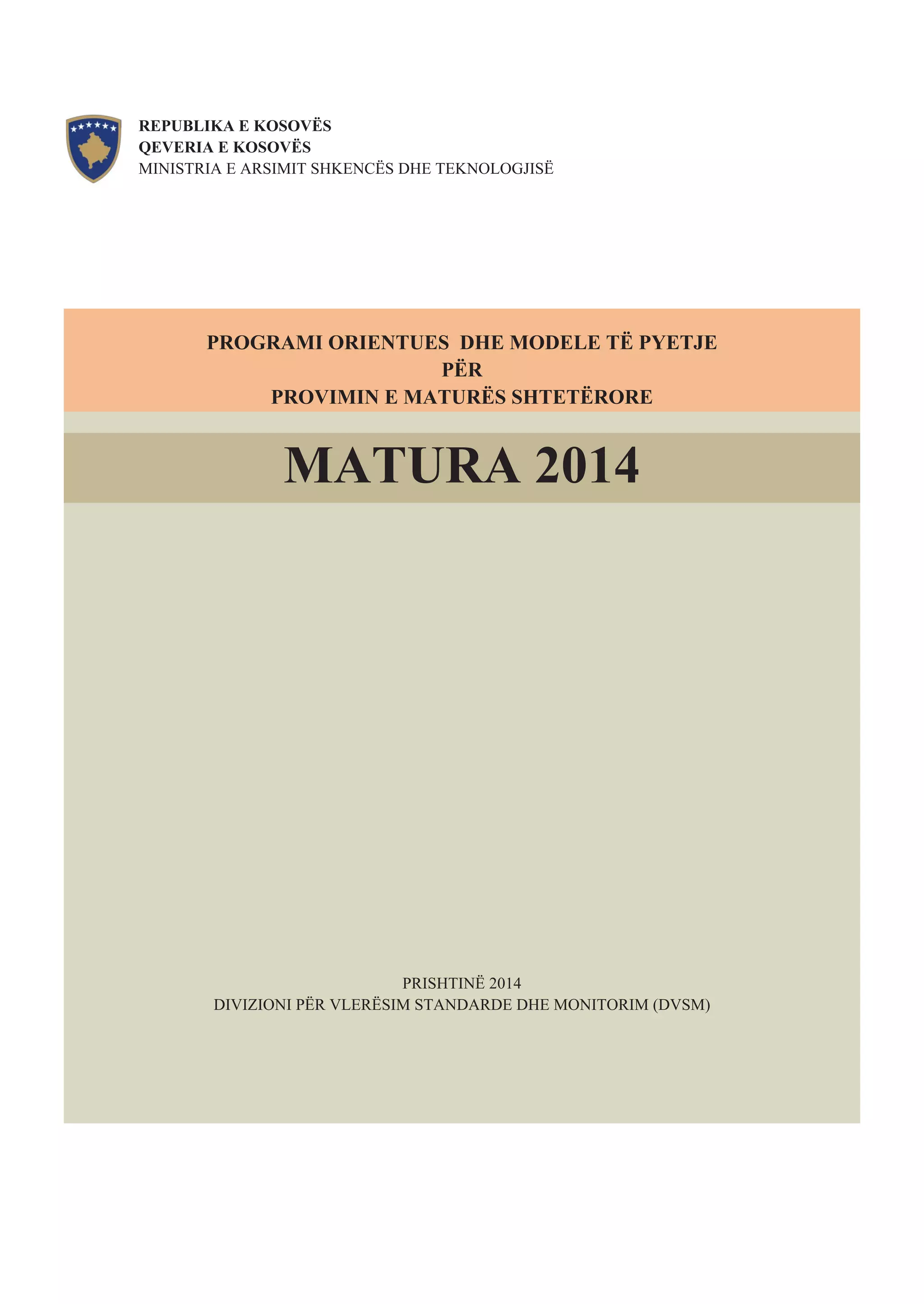 Programi orientues për përgatitjen e Provimit të Maturës Shtetërore 2014, paraqet një fond të përmbledhur të