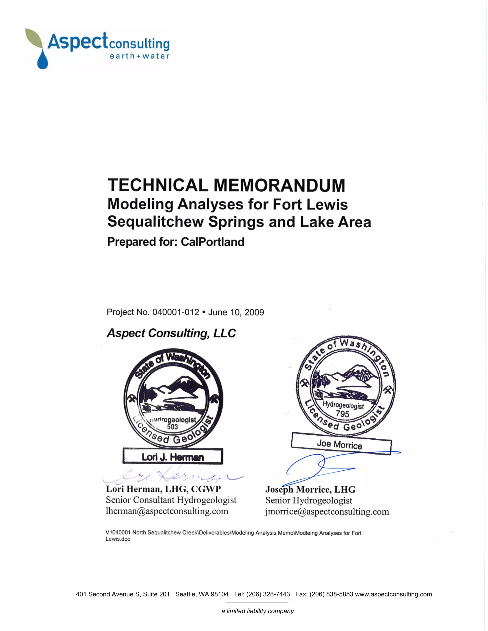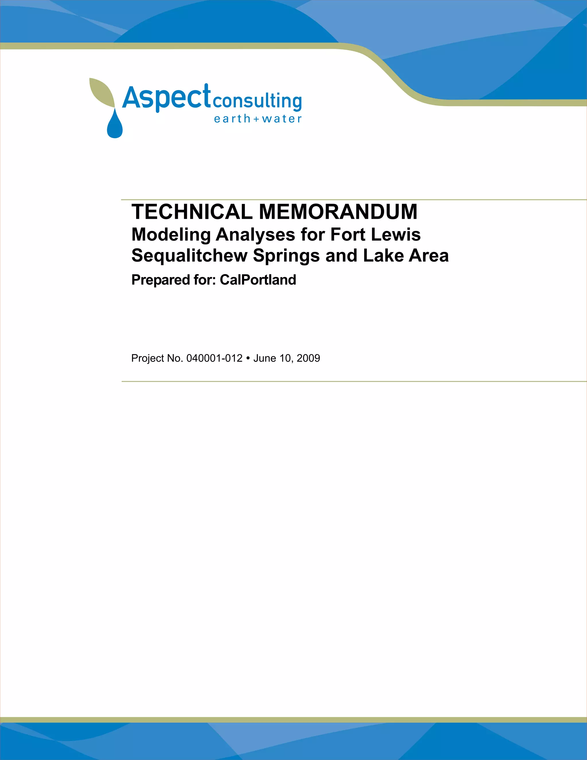 This technical memorandum summarizes additional groundwater modeling analyses conducted for the Fort Lewis Department of the Army Public Works regarding the North Sequalitchew Creek project. The modeling analyses focused on updating inputs and incorporating new data from the last 4 years of monitoring in the Sequalitchew Creek basin. An updated model incorporated recent wetland water levels and flow data from the diversion canal. A second model explicitly included Sequalitchew Lake and conducted sensitivity analyses looking at dry year conditions and changing boundary conditions near Sequalitchew Springs. The revisions refined predictions of surface and groundwater interactions and results from both the updated and lake models continued to indicate drawdown at Sequalitchew Springs would be immeasurable.