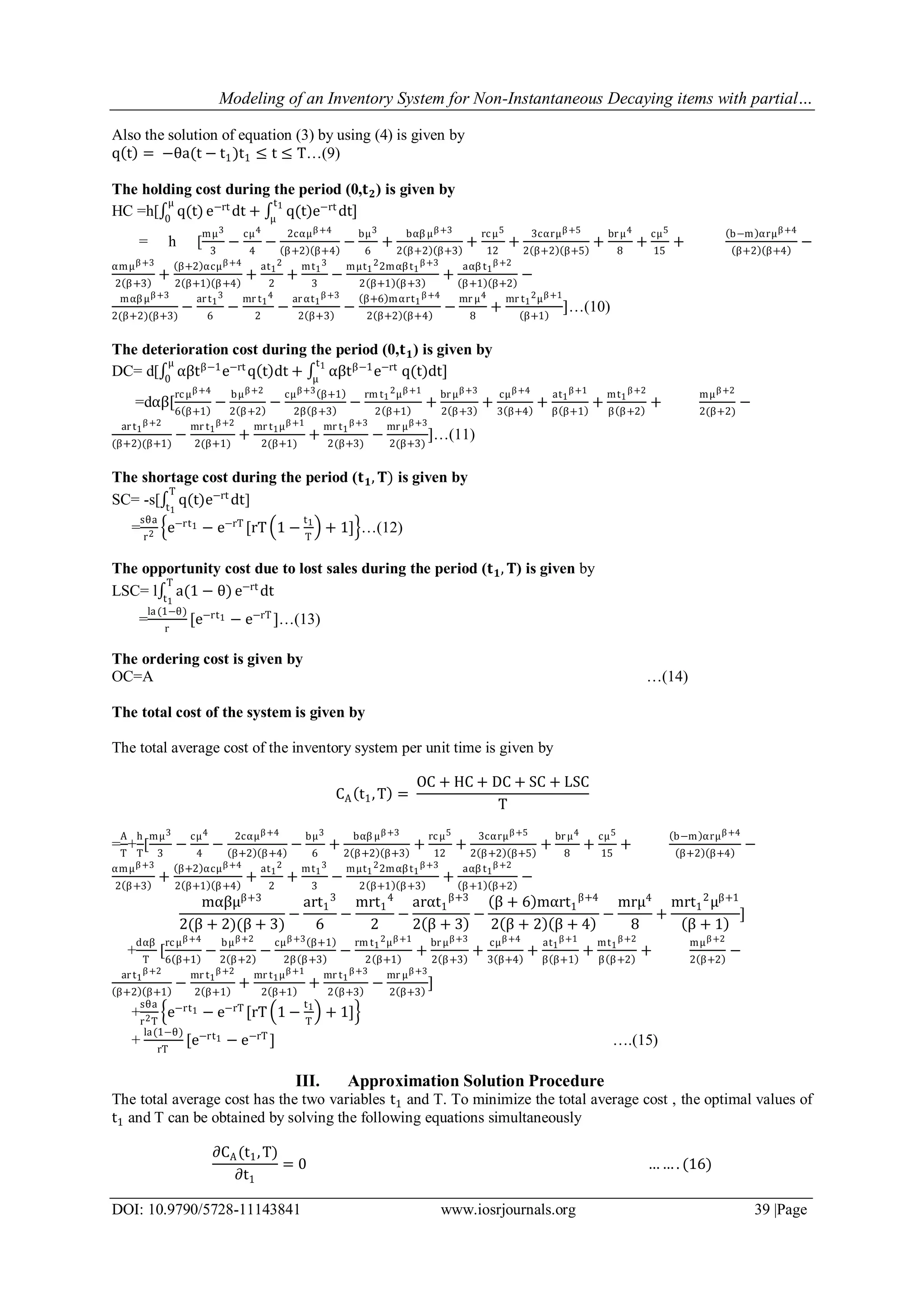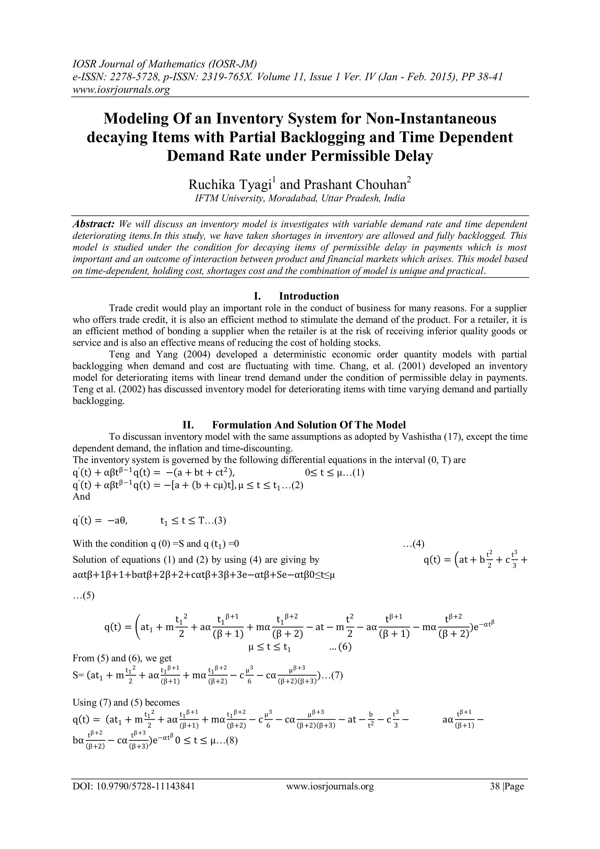 The document presents a mathematical model for managing inventory systems of non-instantaneously decaying items with time-dependent demand and partial backlogging. It explores the implications of trade credit and varying costs, and formulates a system of differential equations to describe the inventory dynamics. The findings highlight the model's utility for retailers in optimizing order quantities to minimize inventory costs.