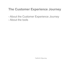 The document discusses modeling systems for information architecture and tools for analyzing the customer experience journey. It describes the customer experience journey as a series of touchpoints from first contact to conversion. It then discusses tools for mapping the customer journey, including a business model canvas, persona template, experience scope, journey script, and touchpoint matrix. These tools provide insights into customers, map the end-to-end experience, and describe touchpoints to improve the journey. The report applies the analysis to business, product, marketing and customer service planning.