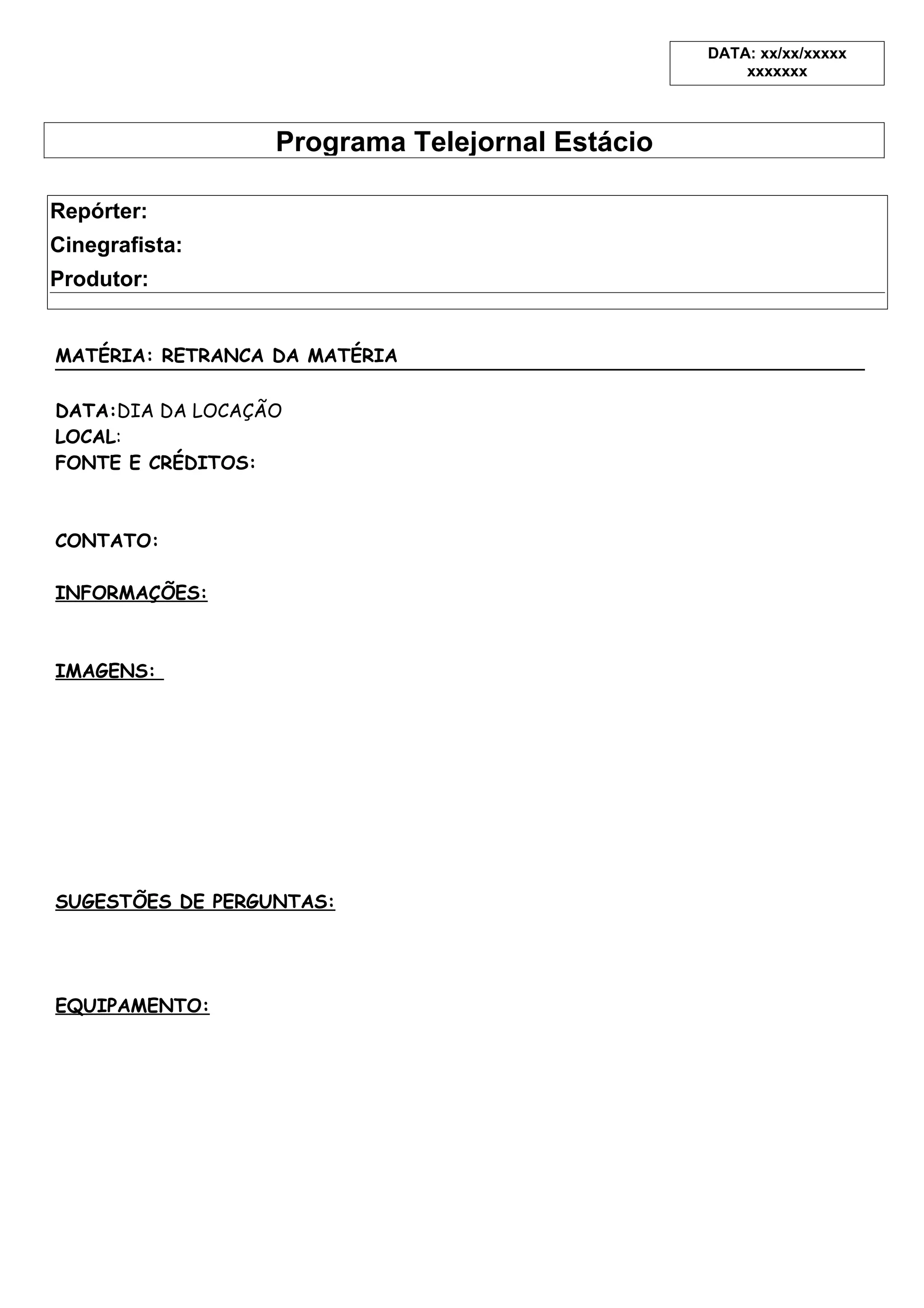 Modelo de pauta para jornal laboratório