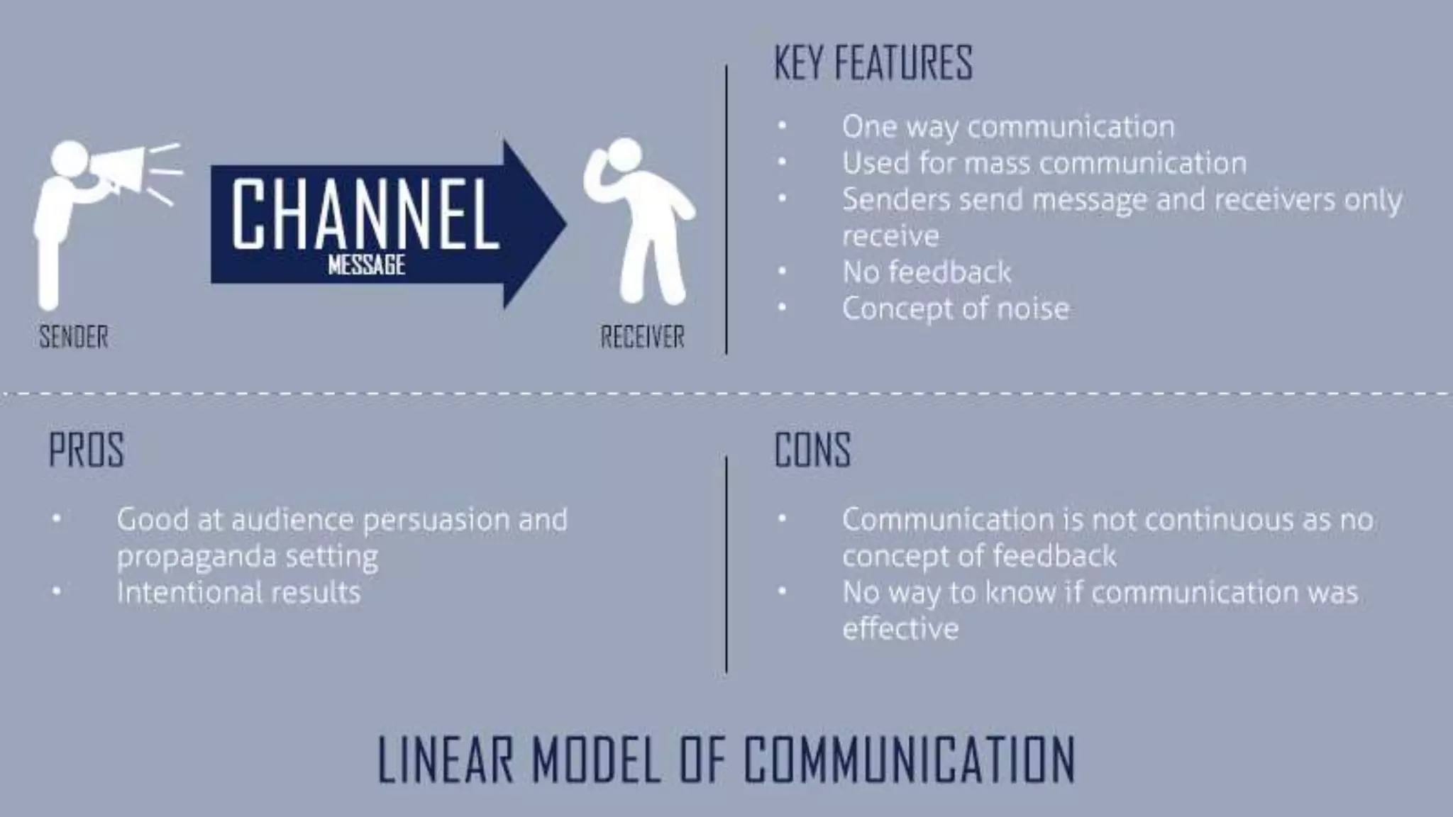 - Linear models include Aristotle's model, Lasswell's model, and Berlo's SMCR model which view communication as one-way.