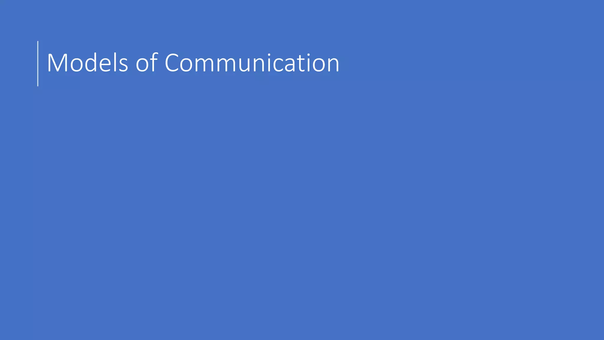 The document discusses various models of communication developed by theorists including Aristotle, Lasswell, Shannon and Weaver, and others. Key models are described, highlighting their components and the evolution of communication theory, such as Shannon and Weaver's 'information theory' and Schramm's simple communication model. The importance of psychological and sociological perspectives in communication is also addressed, showcasing how modern models have built upon early theories.
