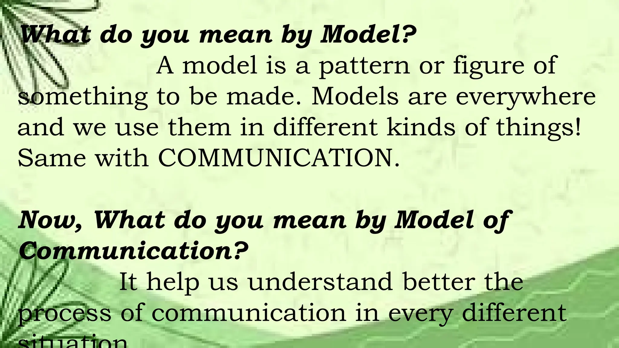 models of communication below; the