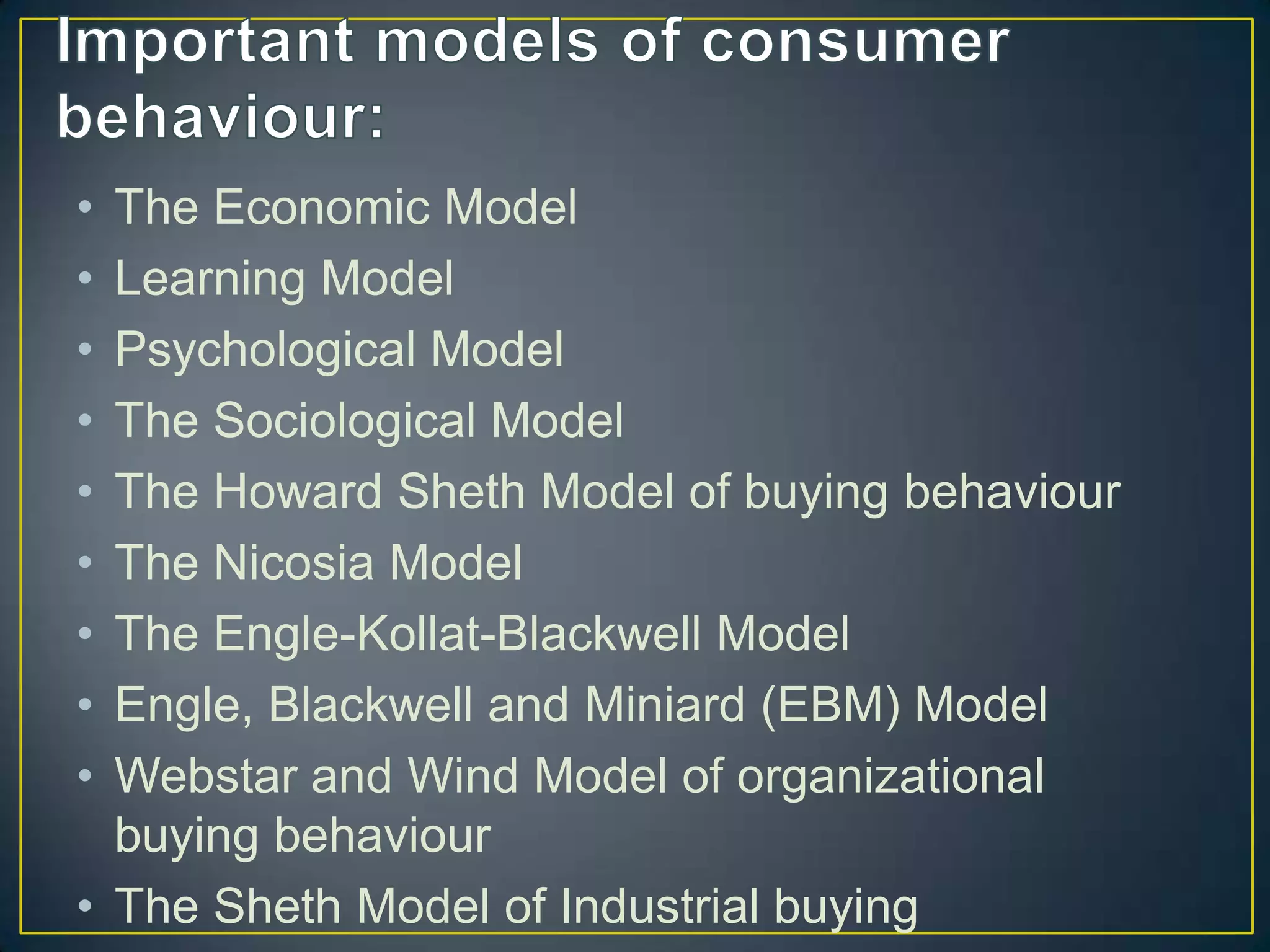 - Contemporary models include the Howard-Sheth model, Nicosia model, Engle-Kollat-Blackwell model, EBM model, and organizational buying models.