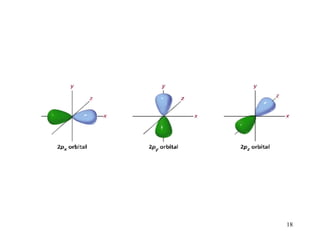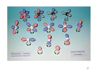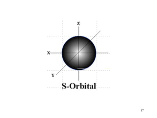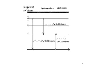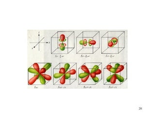 The document discusses the evolution of atomic models over time from Dalton's model to the current quantum mechanical model. It summarizes key developments including the plum pudding model, Bohr's model of electrons in orbits, and how the Schrodinger equation led to the quantum mechanical model where electrons occupy distinct energy levels and orbitals. The modern model describes electron probability clouds rather than set orbits and accounts for properties like electron spin and the Pauli exclusion principle.