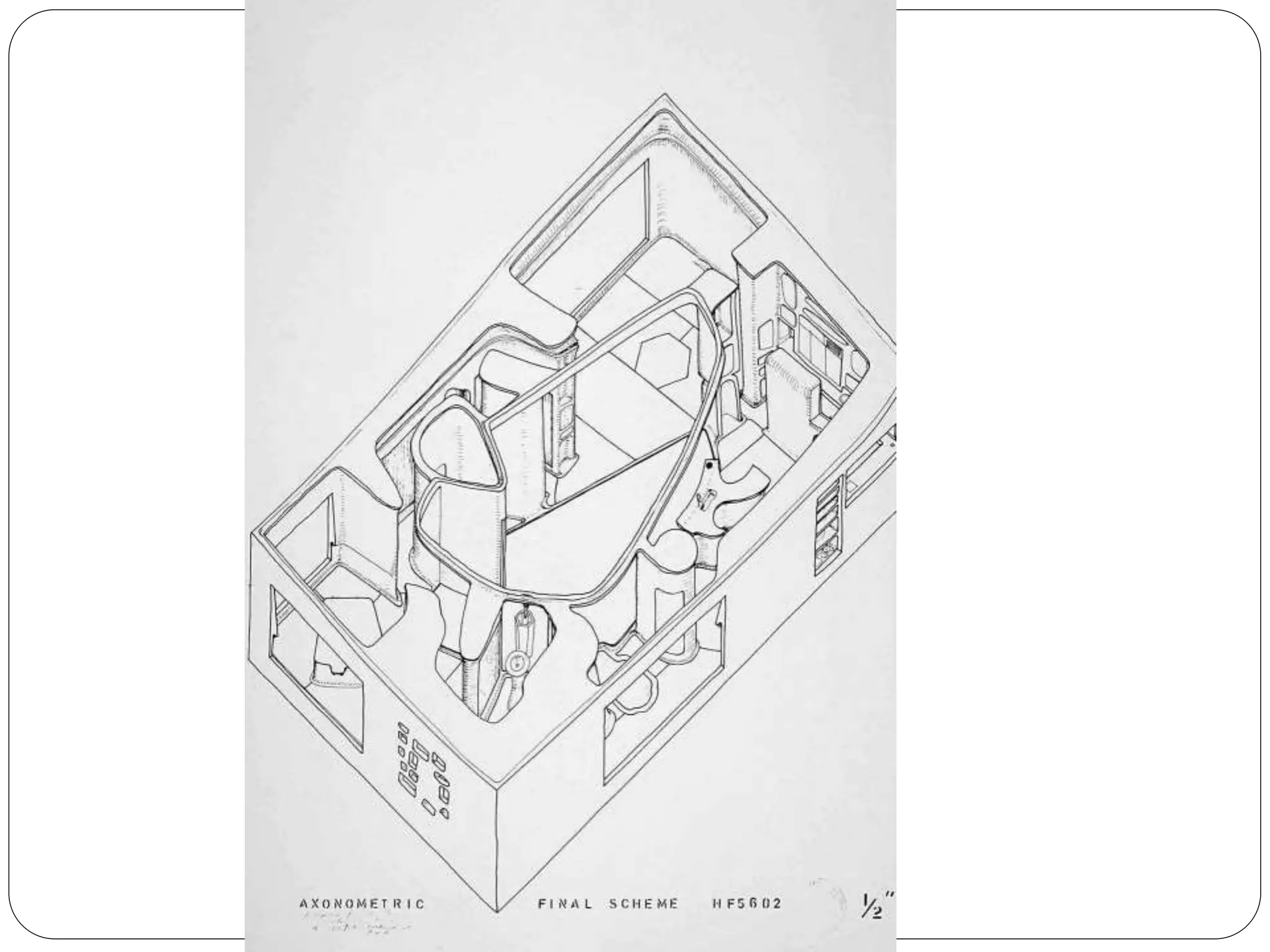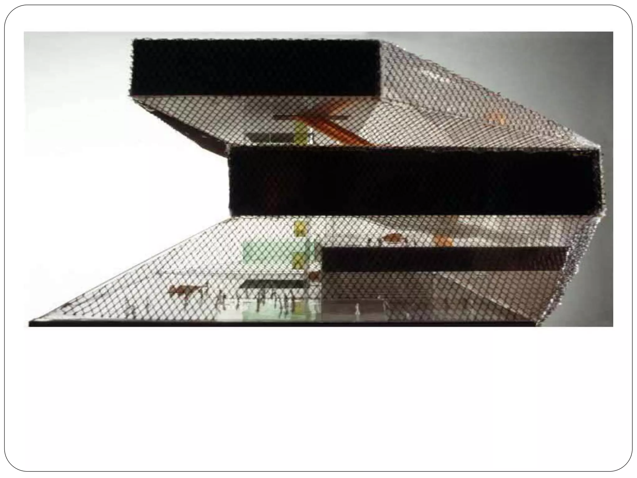 #231 The partitioning seams become a strong formal feature of the exterior façade cladding, whilst these seams also create a spatial rhythm of perspective views within the interior exhibition spaces.
