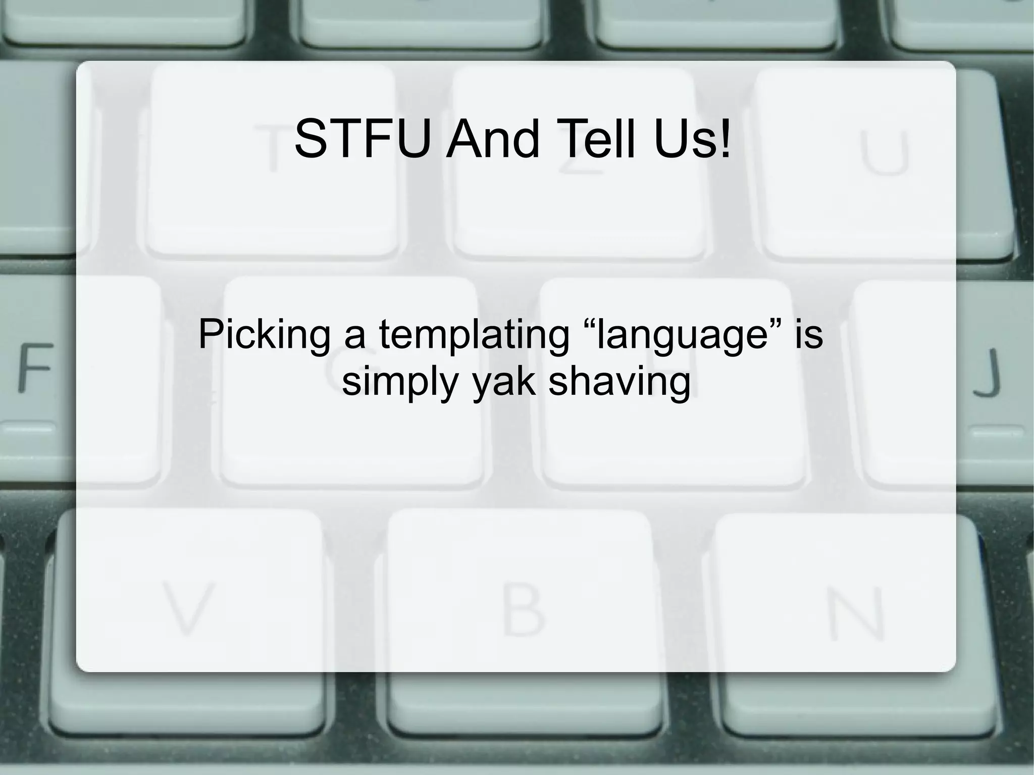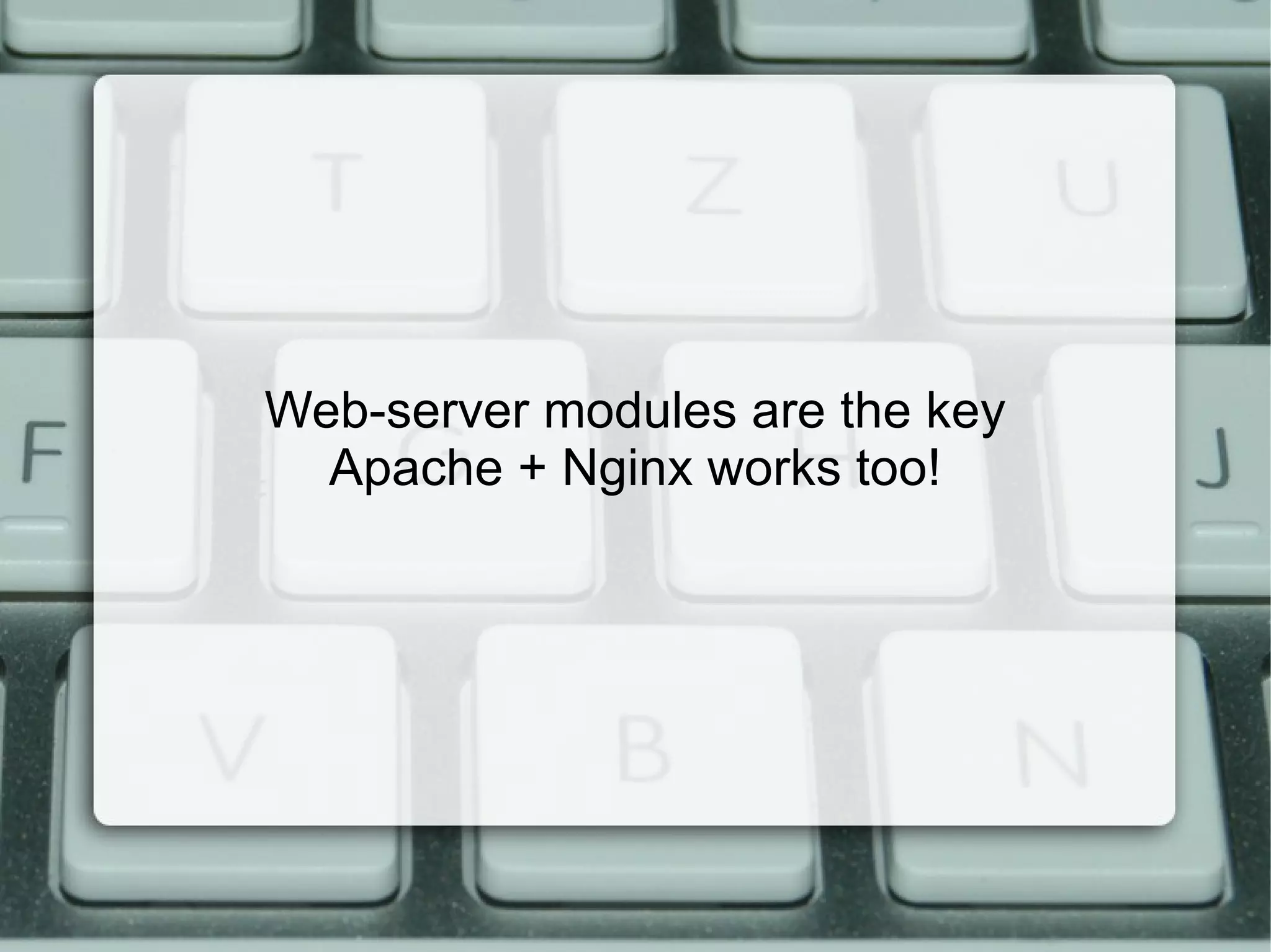 The document discusses modern application stacks, emphasizing that there are no one-size-fits-all solutions and challenging the negativity towards traditional LAMP stacks. It highlights the importance of understanding data relationships and application requirements over adopting trends, suggesting practical approaches to selecting servers, databases, and caching methods. The emphasis is on building applications suited for current needs rather than over-engineering for hypothetical large-scale scenarios.