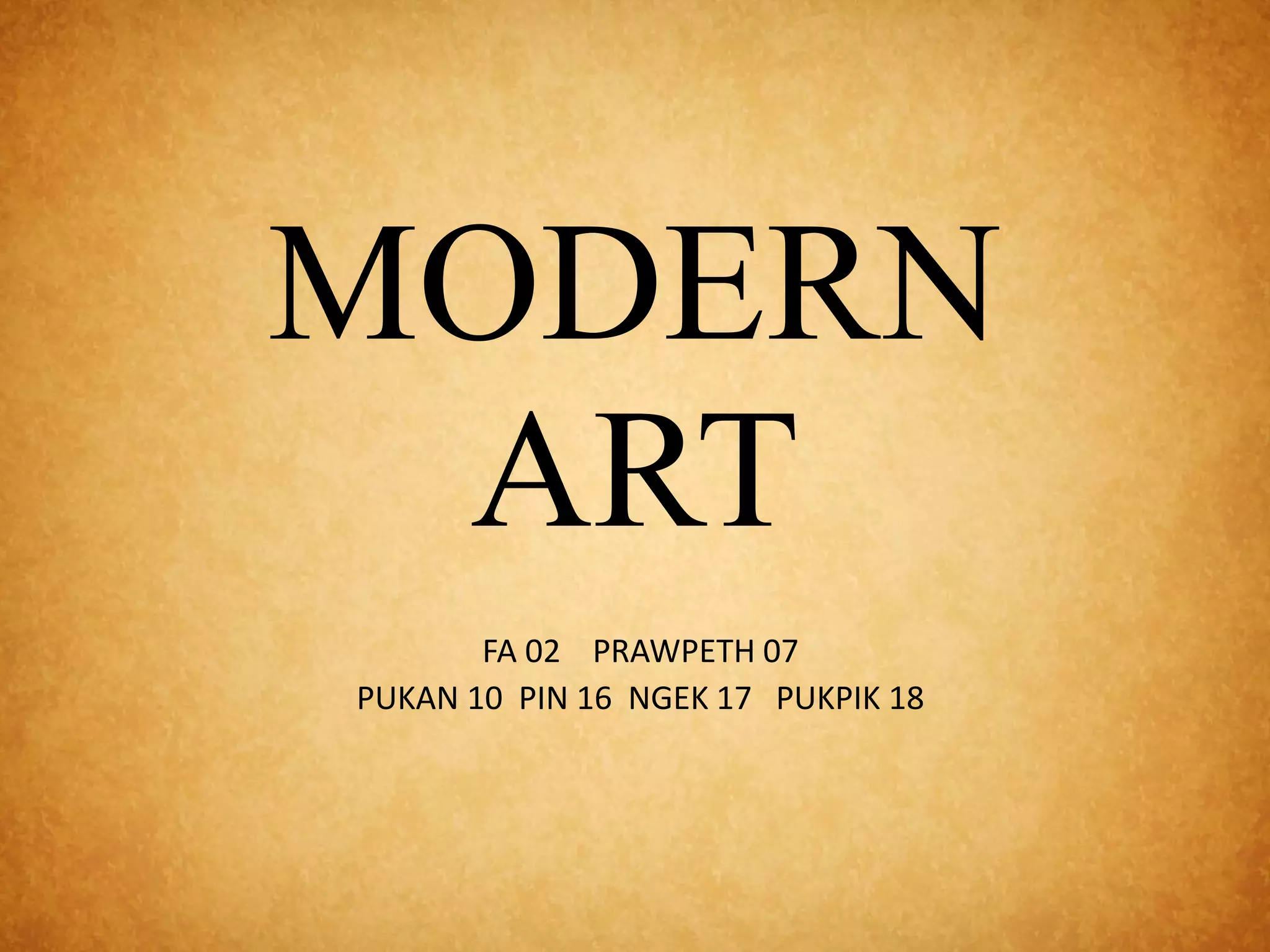 Modern art emerged between 1870-1970 and used new materials and techniques like pointillism. Artists developed theories that art should reflect the perceived world. Neo-classicism focused on Greek/Roman styles and humanism over religion. Romanticism contrasted classicism and used emotion to inspire works. Realism believed truth has its own beauty and represented social issues. Impressionism focused on light, basic shapes, and nature's influence. Post-Impressionism became more symbolic and rejected realistic nature inspiration.