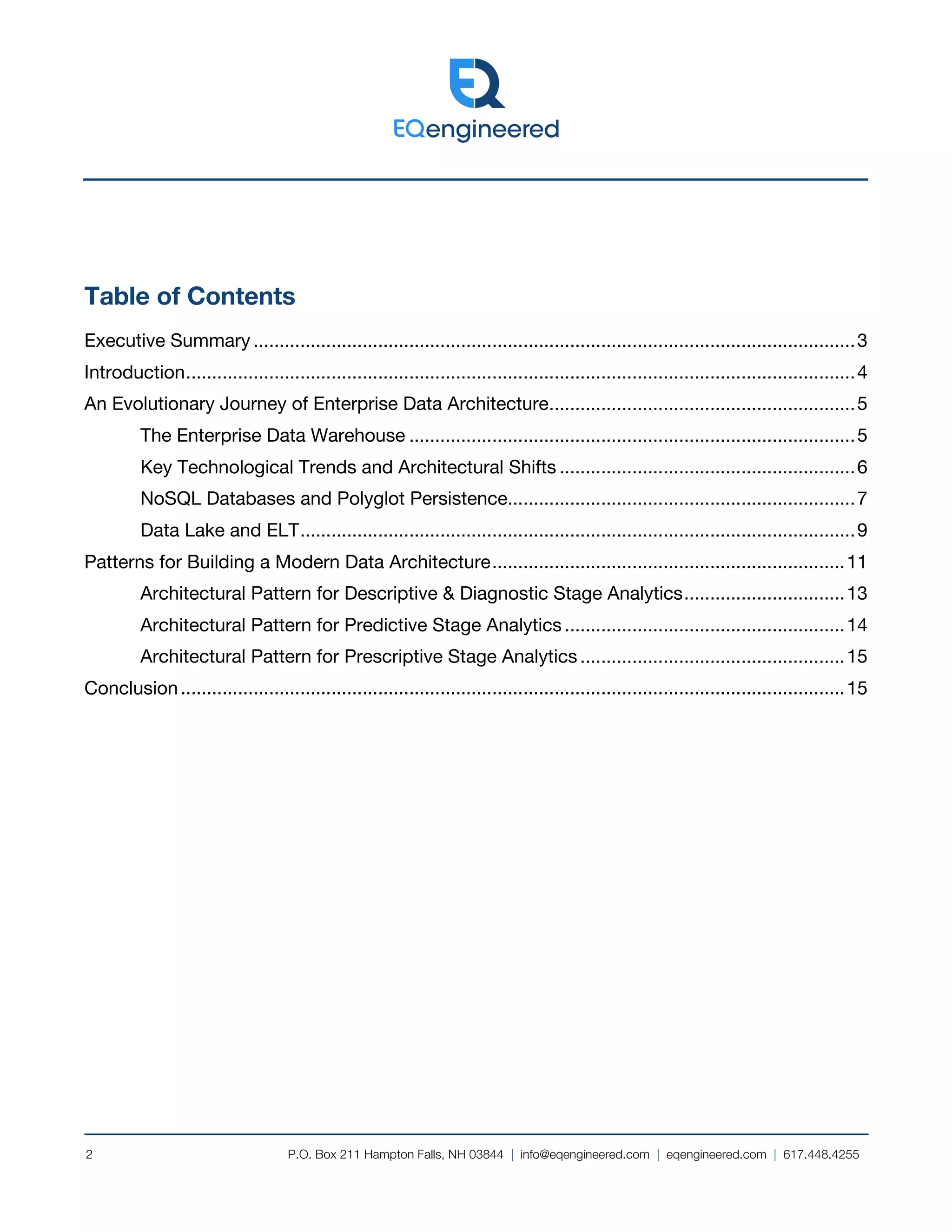 The green paper discusses the evolution of data architecture and modernization strategies to address challenges posed by increased data complexity and volume in the current business environment. It outlines traditional architectures, their limitations, and introduces modern approaches, including cloud computing, NoSQL databases, and data lakes, to enable organizations to better adapt and leverage data for strategic advantages. The document serves as a guide for companies on their data maturity journey, providing insights into architectural patterns suited for different stages of analytics capabilities.