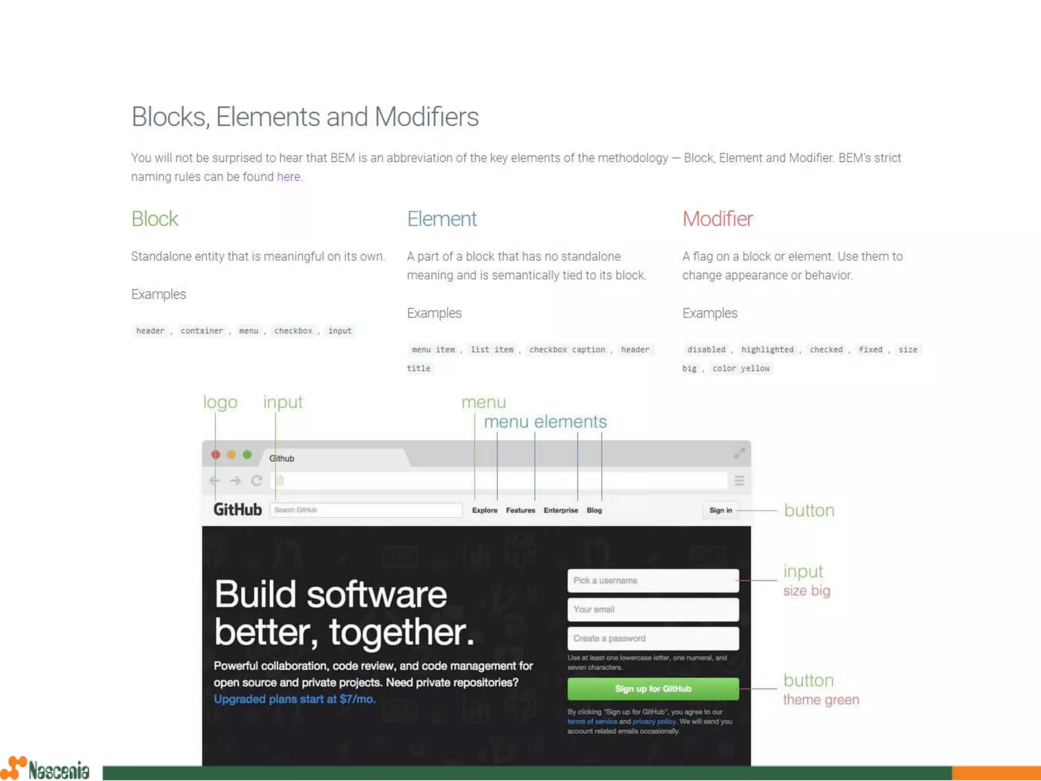 The document discusses the Block Element Modifier (BEM) methodology which aids in creating reusable components in front-end development through a specific naming convention. It highlights the importance of viewport settings for responsive web design, including zoom control properties and device-specific CSS media queries. Additionally, it provides examples of media queries for various devices while emphasizing the transition from bitmap to vector images for better resolution.