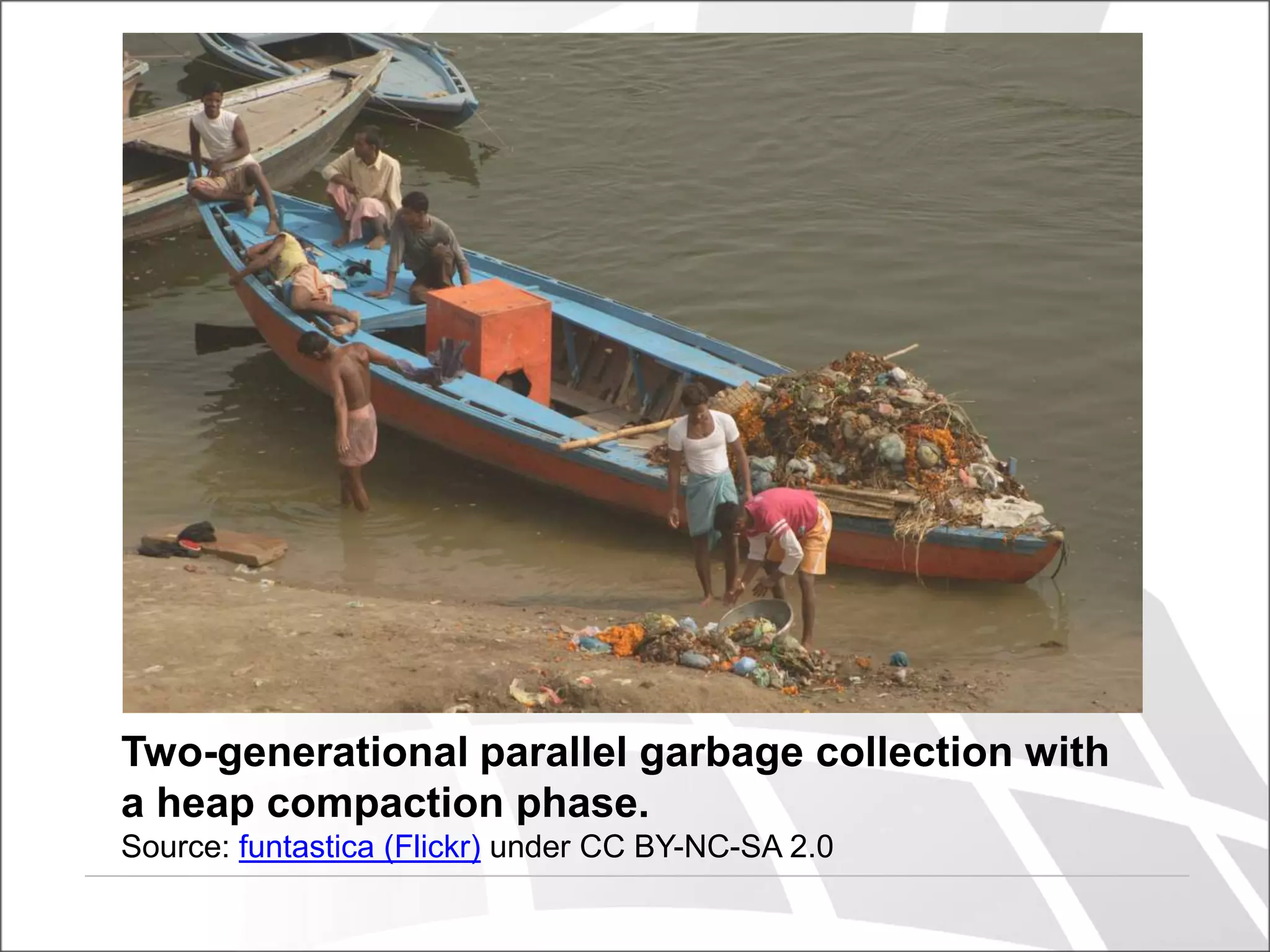 The document discusses advancements in garbage collection techniques, including automatic reference counting and various tracing methods such as mark-sweep, copying, and generational approaches. It highlights the complexities of modern memory management, particularly in concurrent environments, and details systems like Azul's fully concurrent collectors designed for high-performance applications. The content also reviews practical implementations and performance implications of different garbage collection strategies in languages such as Java and Objective-C.