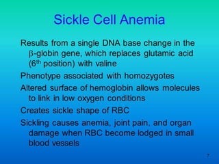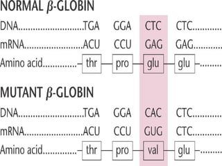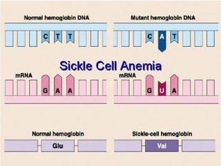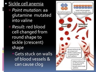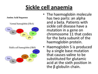 3. Genetic diseases like sickle cell anemia, thalassemia, albinism and Huntington's chorea are caused by defects in genes and result in characteristic symptoms. Protein models help understand protein structure and function.