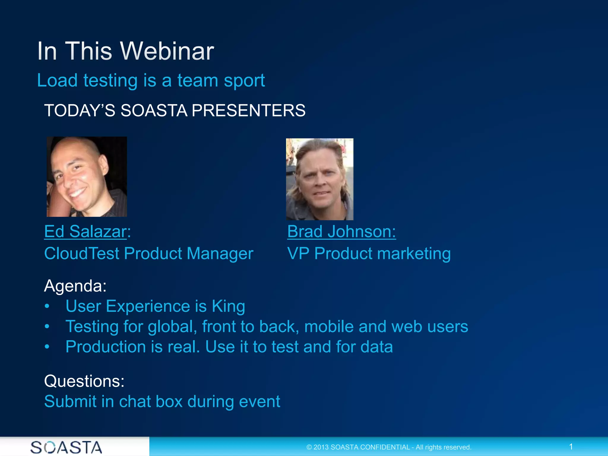 The document discusses the importance of load testing for mobile and web applications, emphasizing the need for rapid and real-time results in a production environment. It highlights the challenges faced in traditional testing methods and advocates for continuous testing alongside real user performance metrics. The document also outlines Soasta's solutions, including their cloud testing platform, to enhance user experience and address various performance issues.