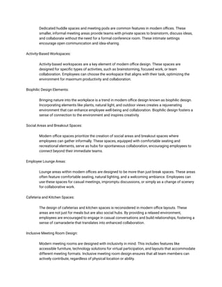 Modern office spaces are designed to enhance employee collaboration through open layouts, flexible workspaces, and collaborative furniture solutions. They incorporate technology and biophilic design to create environments that encourage interaction and creativity. Additionally, social areas and thoughtful noise management contribute to a balanced atmosphere that fosters teamwork and productivity.