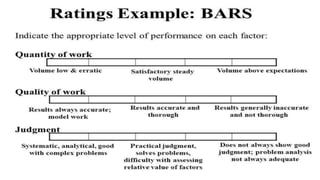 This document discusses and compares traditional and modern methods of performance appraisal. It outlines 6 modern methods: assessment centre, appraisal by results (MBO), human asset accounting, behaviorally anchored rating scales (BARS), and 360-degree feedback. For each method, it provides a brief description and highlights their advantages as providing frequent feedback, being more developmental, and grouping rewards organizationally rather than individually. It also notes potential disadvantages like being subjective and a waste of time if not done correctly.
