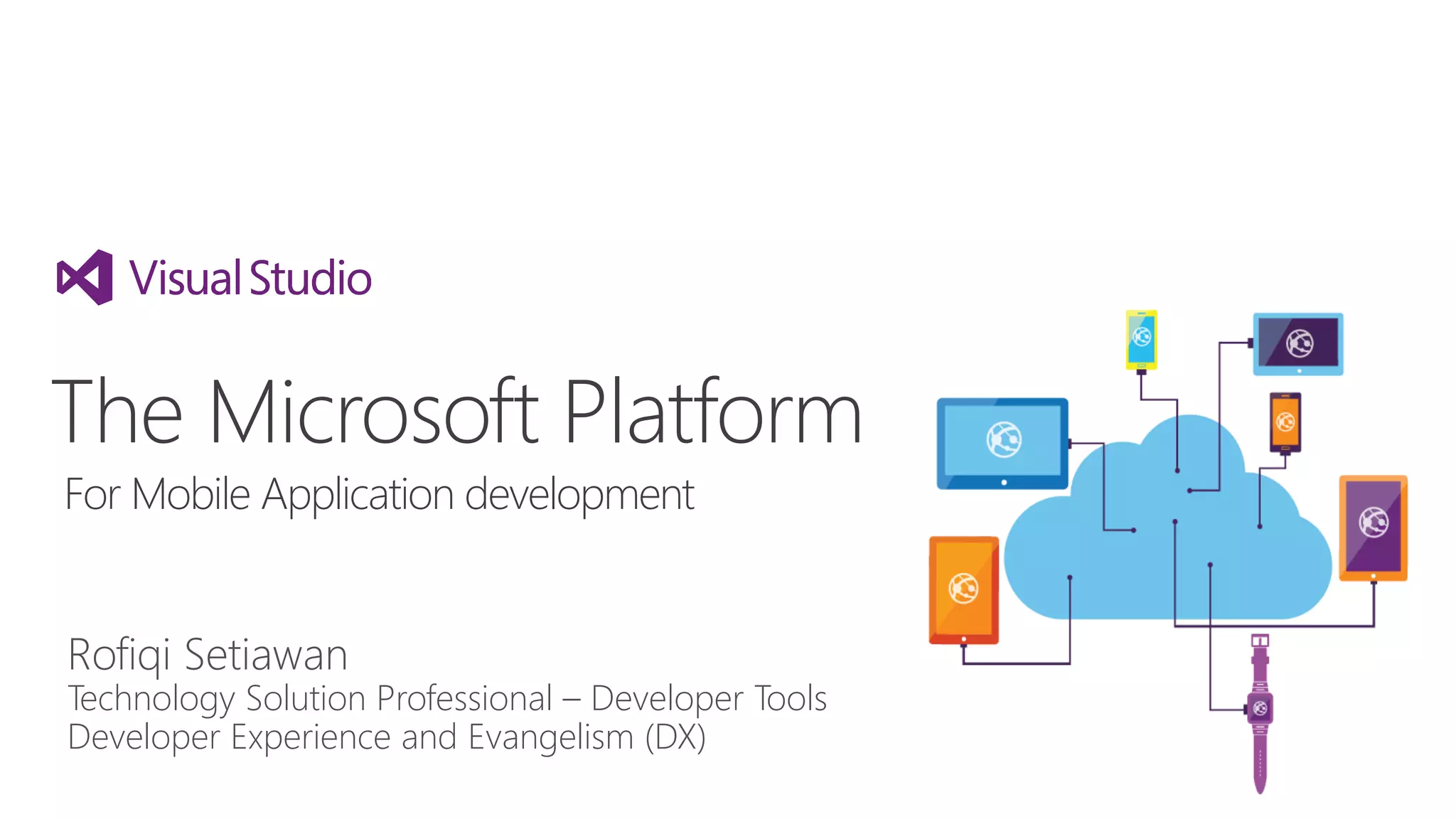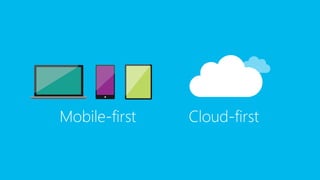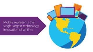 The document outlines Microsoft's platform for mobile application development, emphasizing the importance of innovation and integration of modern mobile experiences with existing business assets. It highlights the convergence of various Windows platforms, including the development of universal apps and the use of tools like Visual Studio and Microsoft Azure to enhance productivity and collaboration. Additionally, it discusses the features and services available for mobile app development, including hybrid infrastructure and development agility.
