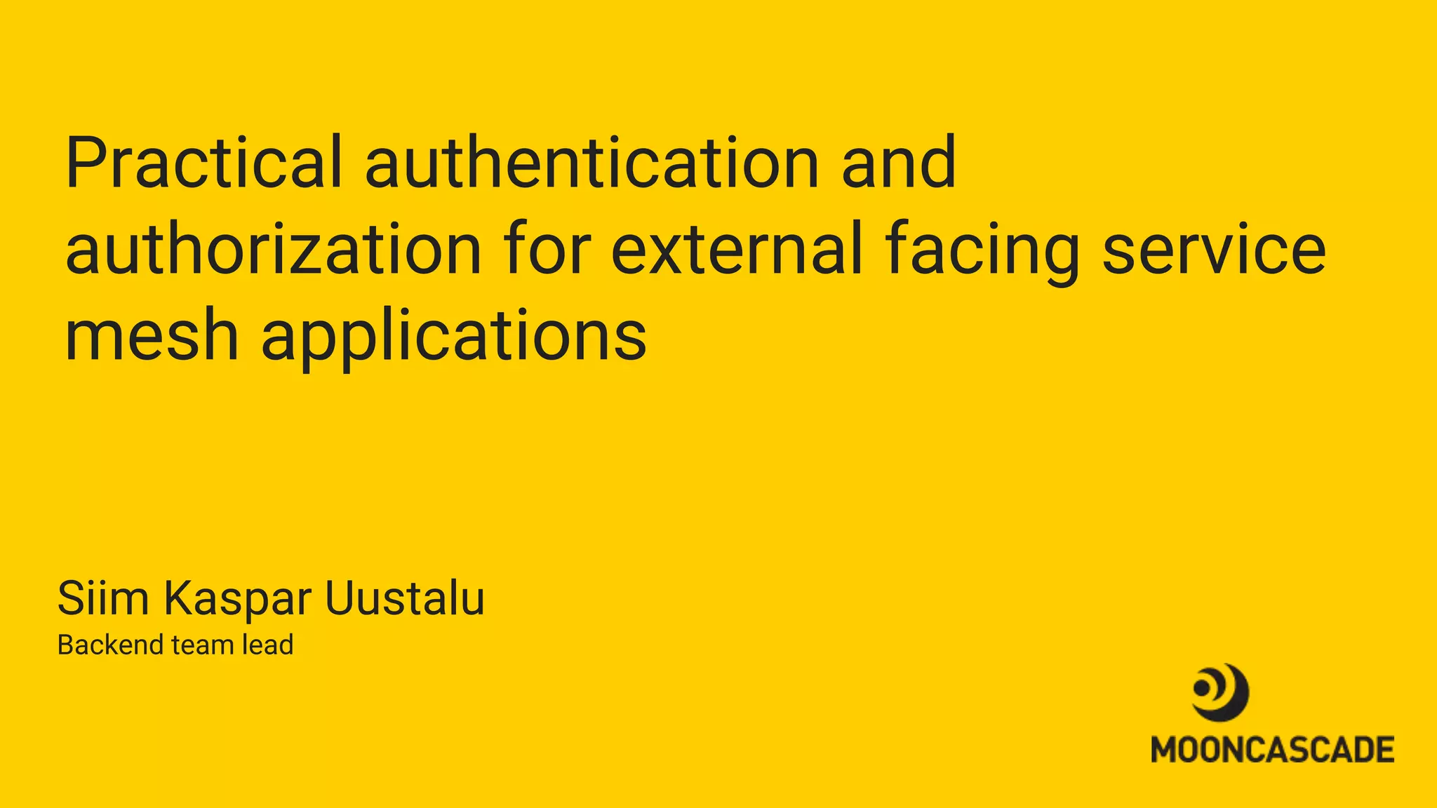 The document discusses adding authentication and authorization to an externally facing service mesh application. It introduces authentication using the OAuth 2.0 framework with an API gateway and authentication service. Authorization is implemented using Open Policy Agent to define policies separately from services. The resulting architecture separates authentication, authorization, and application services for improved scalability and team autonomy.