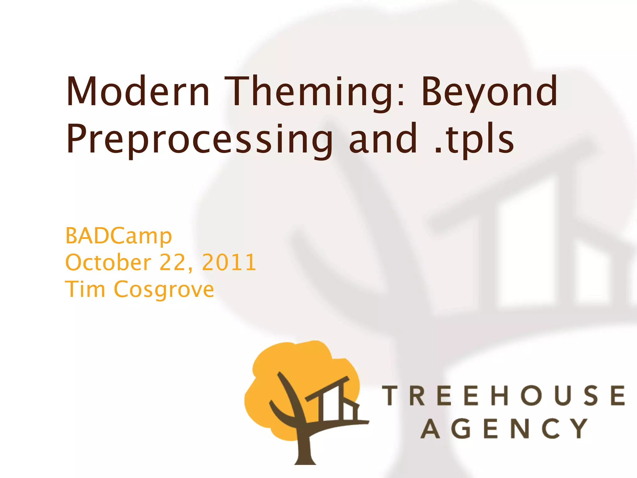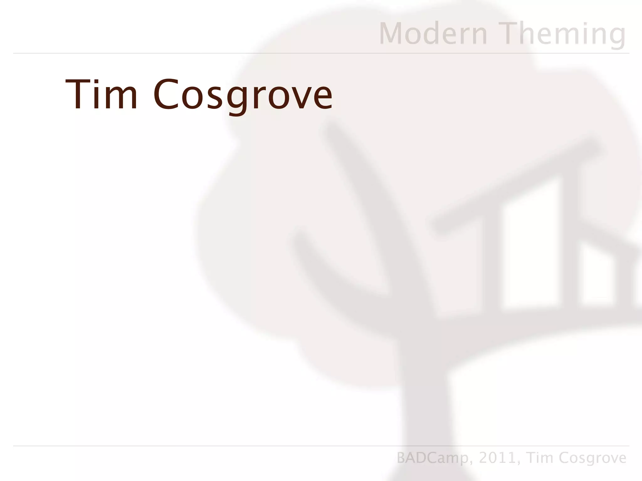 Tim Cosgrove gave a presentation at BADCamp on modern theming in Drupal. He advocated for themers to embrace writing PHP code and using modules over templates when possible. He also promoted using grids for layout, reusing repeating elements, and taking advantage of Drupal 7 features like the updated core.