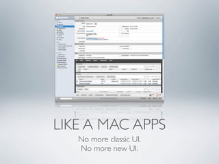 Modern Aqua is a theme for SugarCRM 6.1 that is designed like Mac apps with modules, actions, and last viewed items located on the left side for wide screens. It features a polished subpanel with high contrast design and big buttons for touch, along with a new bottom toolbar and translucent head up display similar to modern desktop apps. The theme uses oxygen icons from the KDE Project and can be installed by downloading or uploading to Sugar and selecting ModernAqua from the theme chooser in user preferences.