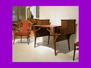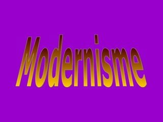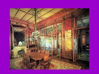 Índex Modernisme Modernismeondulant Bèlgica - Víctor Horta: Casa Tassel, Casa Solvay, Casa del poble - Henry Van de Velde: Casa Van de Velde, tenda Bin (Art Nouveau) França - Héctor Guimard: Castel Berenguer, les estacions Modernisme geomètric Gran Bretanya - Charles R. Mackintosh: Salons de té, Escola Art Glasgow Àustria - Otto Wagner: Metropolità de Viena, Estacions, Casa Majòlica, Caixa d’Estalvis - Olbrich: Edifici Seccesió - Hoffmann: Palau Stoclet Modernisme català i mallorquí Lluís Domènech i Muntaner: Editorial Montaner i Simón, Cafè-restaurant de l’Exposició Universal de Barcelona, Hospital de Sant Pau, Palau de la Música, Casa de Lleó Morera, Gran Hotel Palma Josep Puig i Cadafalch: Casa Ametller, Casa Martí Antoni Gaudí i Cornet: Faroles Plaça Reial, Casa Vicens, Finca i Palau Güell, Parc Güell, Sagrada Família, Casa Batlló i Casa Milà (La Pedrera), Convent de les Teresianes (Barna), Palau episcopal Astorga, Casa Botins Lleó, El Capricho Cantàbria, Reforma Seu Palma, Monestir LLuc