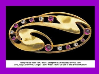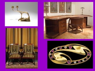 Inspiració en lanaturalesa. Tendència a l’ús d’imatges femenines. Preferència de l’ornamentació curvilínia. Gran preocupació por fusionar la vida quotidiana amb l’art. Característiques