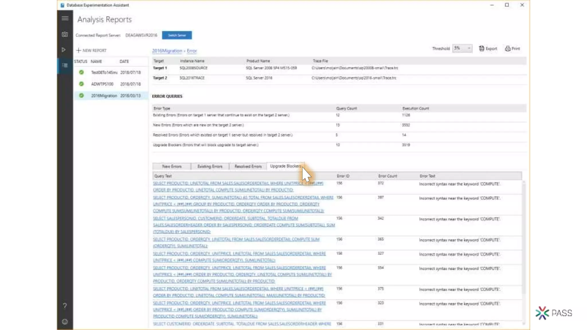 The document discusses the PASS Summit 2019, the largest technical conference for data professionals leveraging the Microsoft data platform, offering various discounts and information on upcoming webinars and sessions. It emphasizes the importance of modernizing SQL Server and introduces tools like the Database Migration Assistant and Database Experimentation Assistant to facilitate smooth upgrades and assess compatibility. Additionally, it outlines the significance of maintaining database compatibility levels for functional protection and risk management during upgrades.