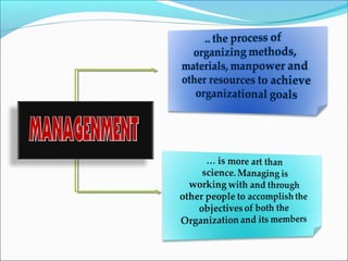 The document outlines essential managerial and technical competencies required for effective performance at various management levels, emphasizing skills such as communication, delegation, and problem-solving. It discusses different management styles and the importance of adapting styles to specific situations while also highlighting the role of leadership in fostering a productive environment. Overall, it emphasizes that successful managers must demonstrate strong leadership and managerial skills to achieve organizational goals.