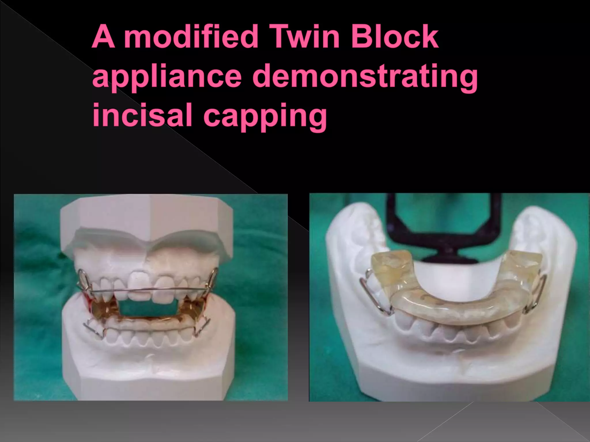 This document discusses the Twin Block appliance, which was originally developed by Clarke. It remains a widely used functional appliance for treating Class II malocclusions. The Twin Block consists of separate upper and lower acrylic appliances connected by occlusal blocks. It works by forcing the mandible into a protrusive position during jaw closure. The document describes the standard Twin Block design and various modifications that have been made, including the addition of expansion screws, torquing springs, and bite jumping screws to allow for gradual advancement. Advantages include comfort, aesthetics, and improved patient compliance compared to fixed appliances. The Twin Block is effective at correcting Class II malocclusions in a rapid manner.