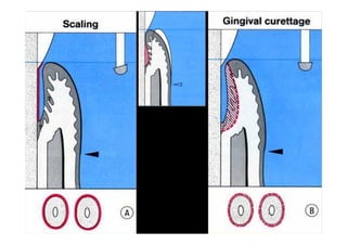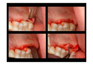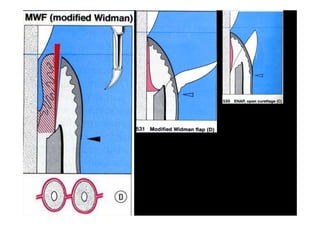 2. The goal is access for root debridement rather than pocket elimination. Minimal flap elevation of 1-2mm is done to access root surfaces.