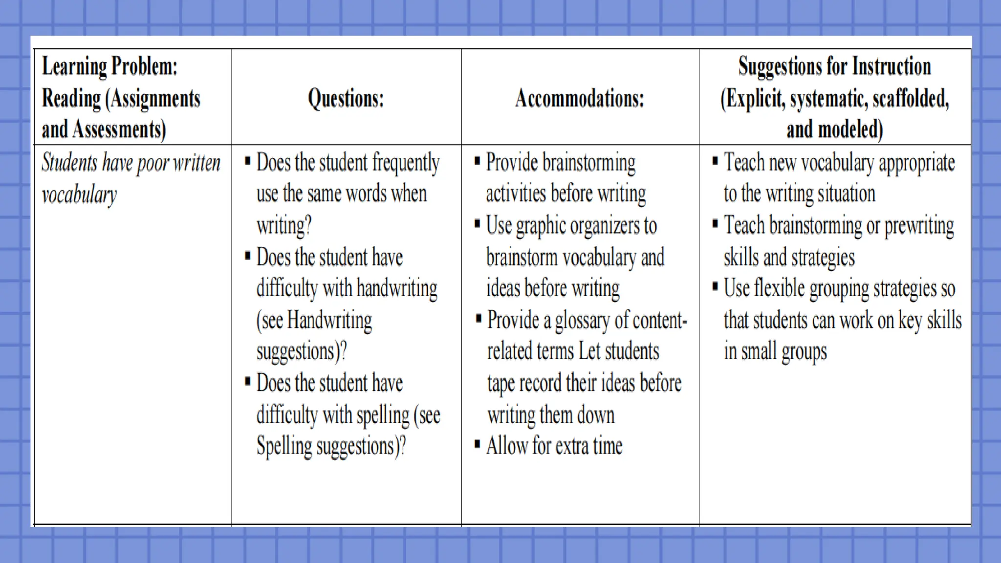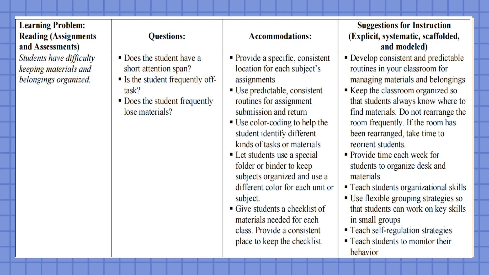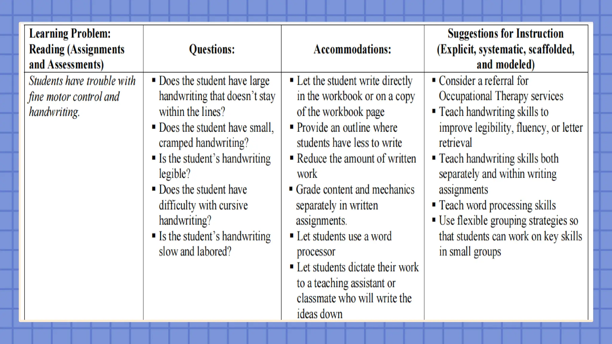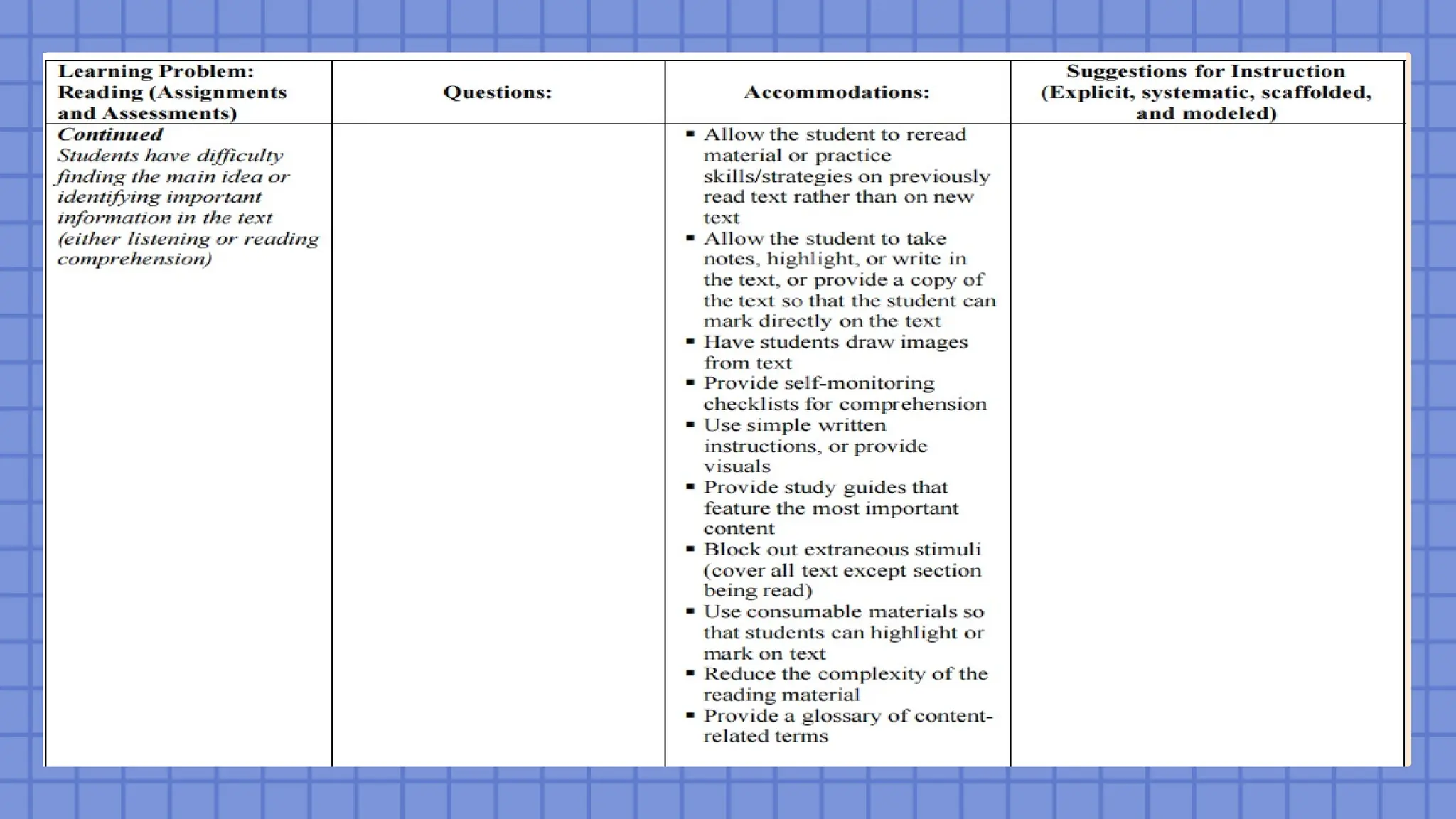 instructional materials to accommodate students with
