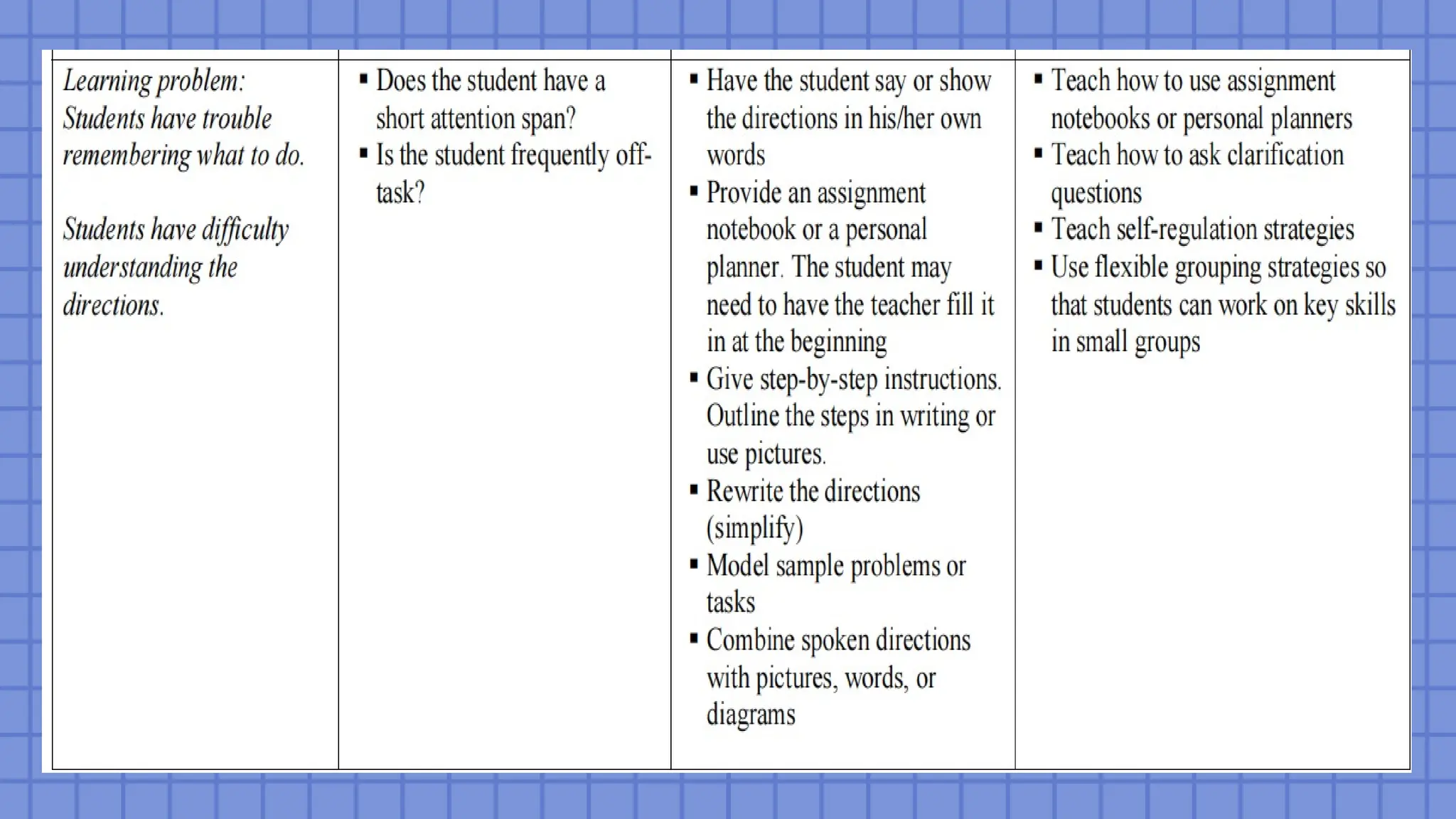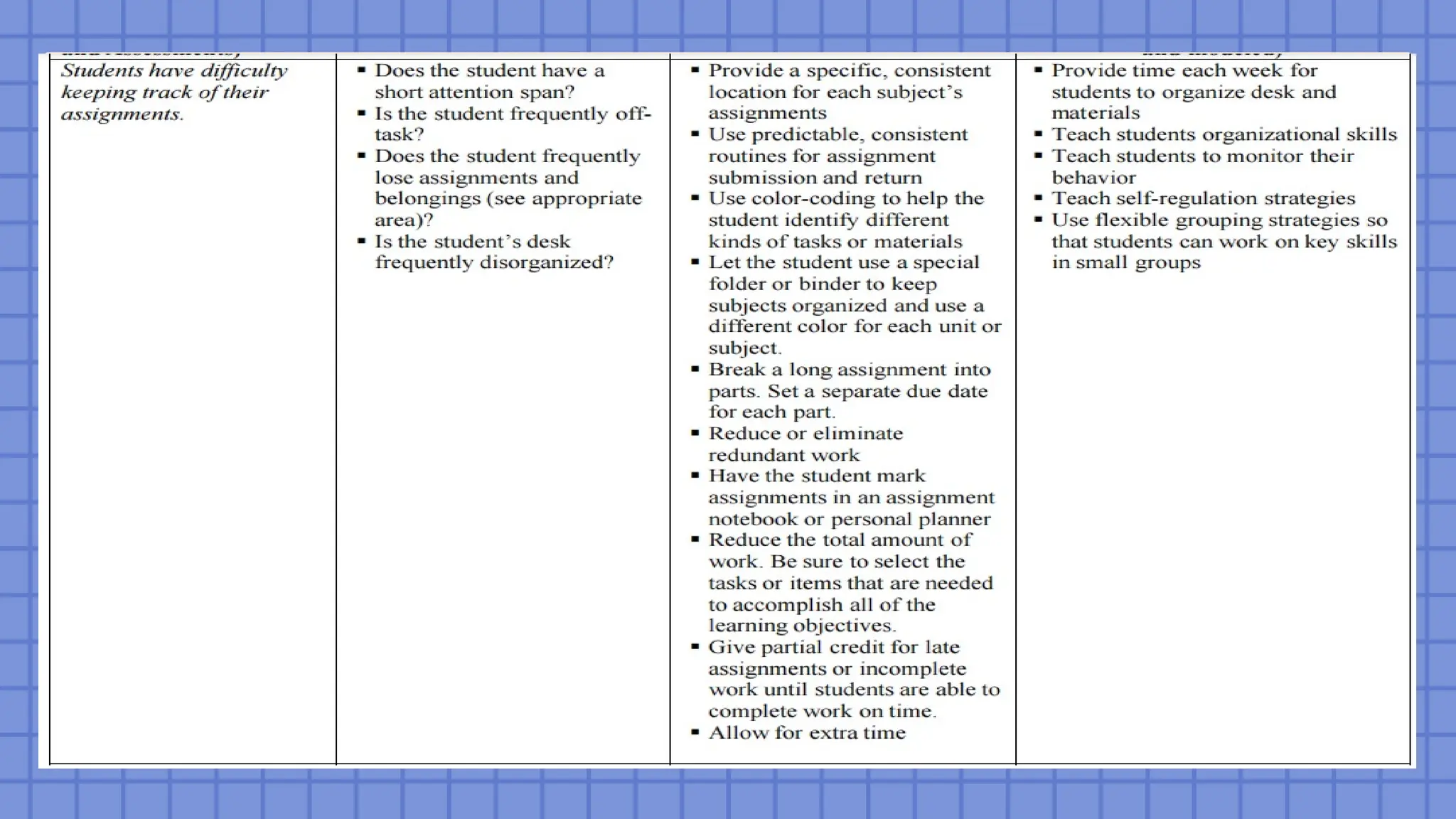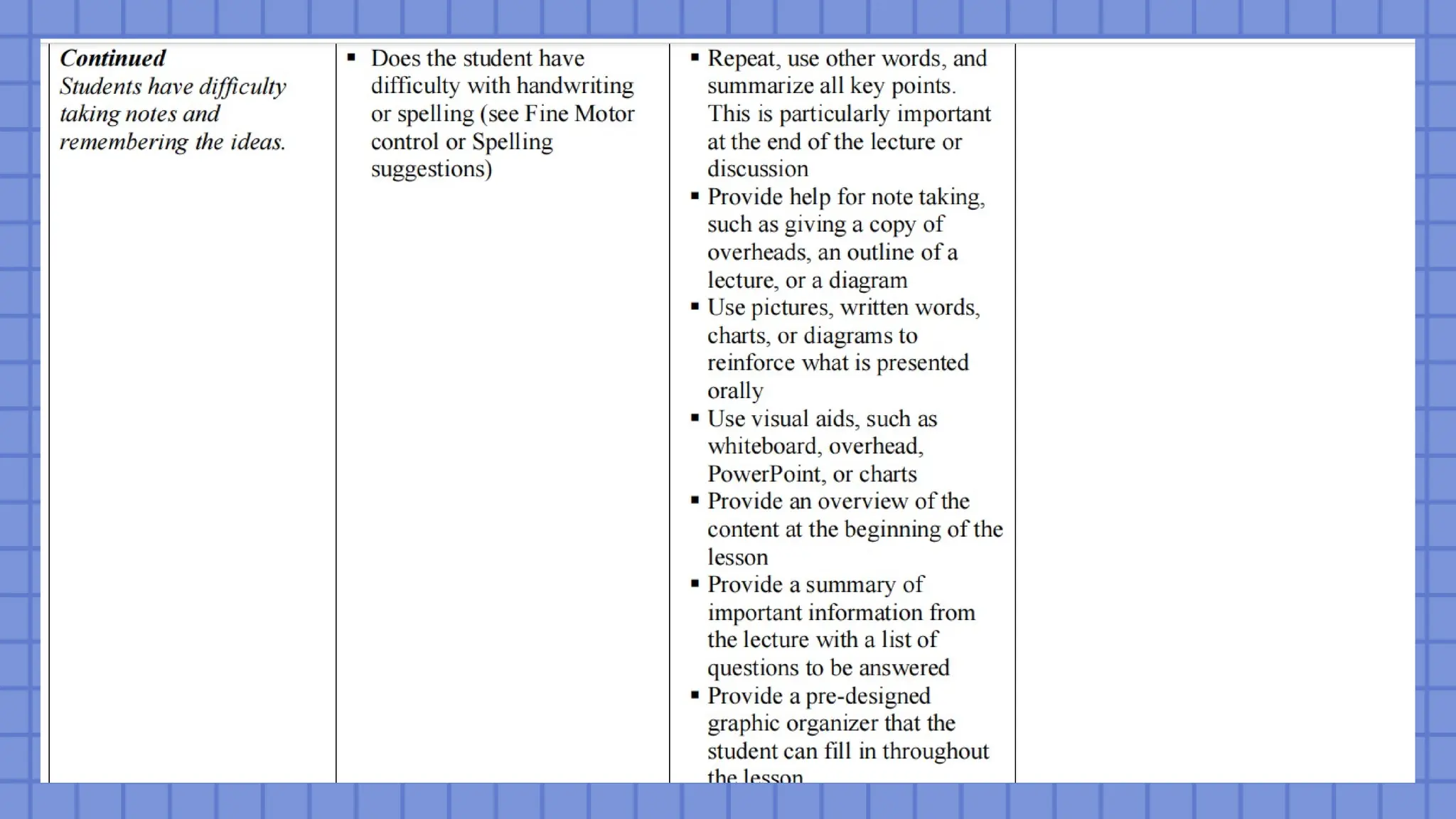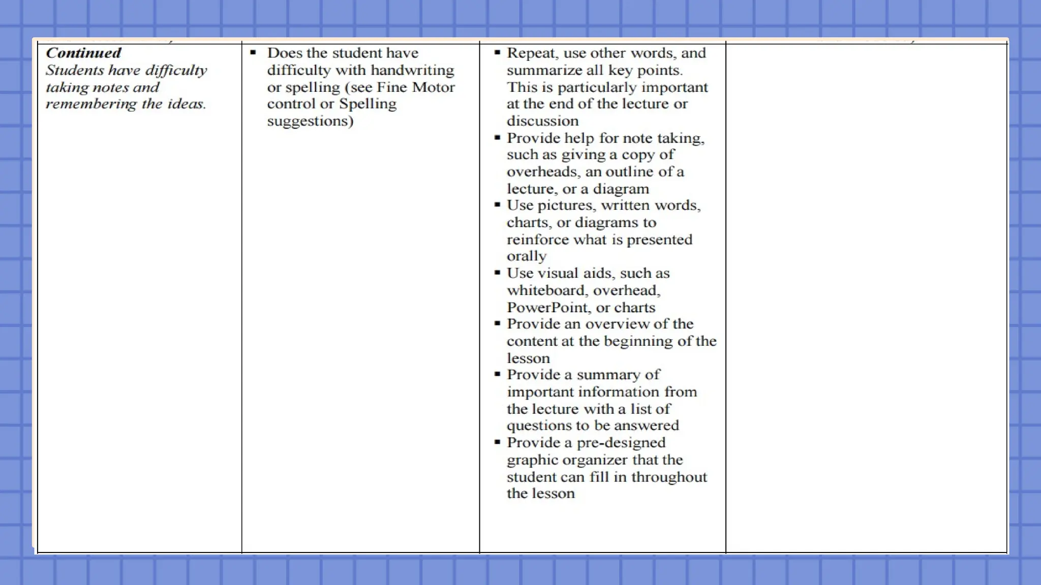 be removed until the student possesses the skills and strategies to