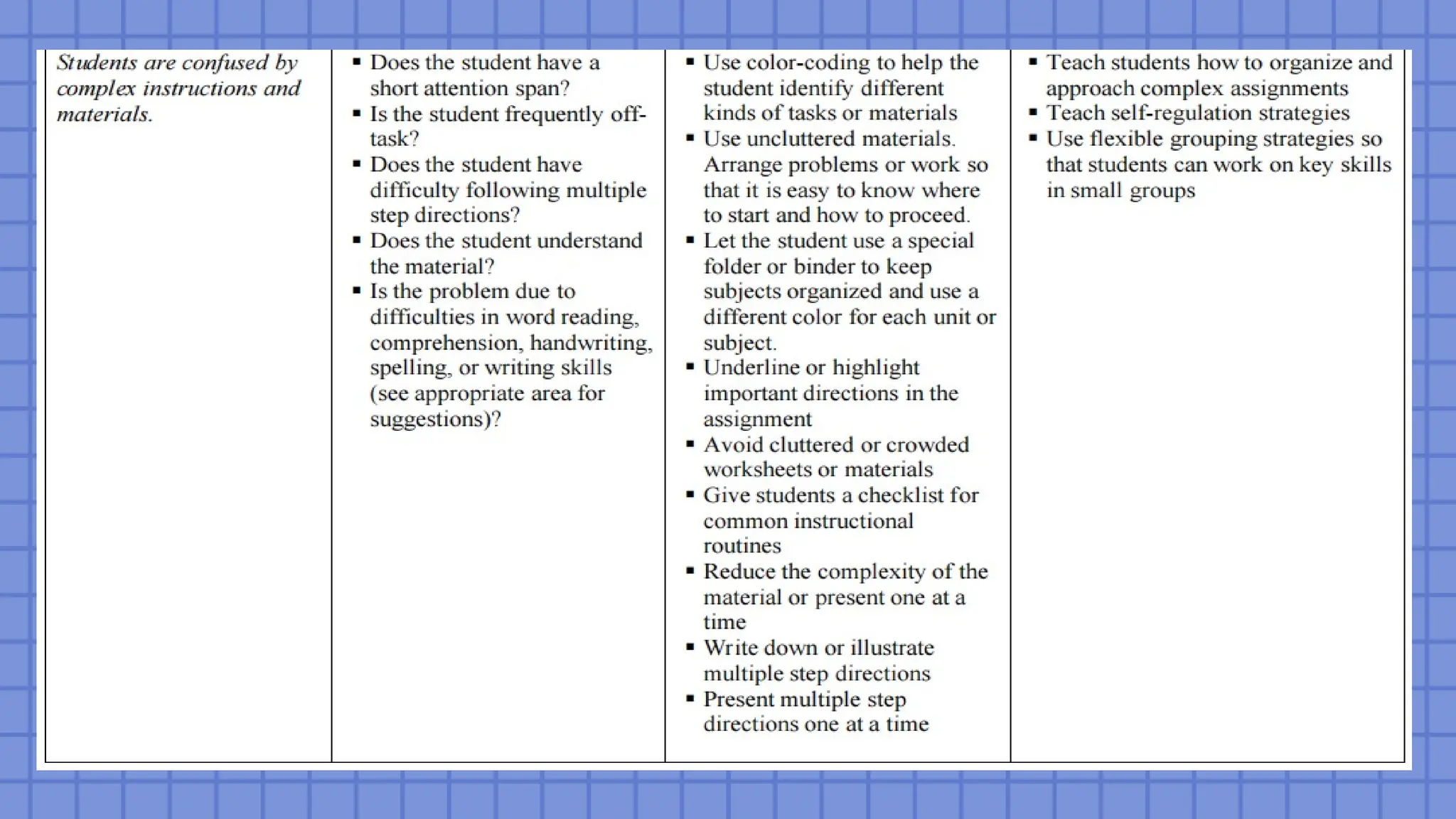 your instruction to mediate the barriers presented by the materials so