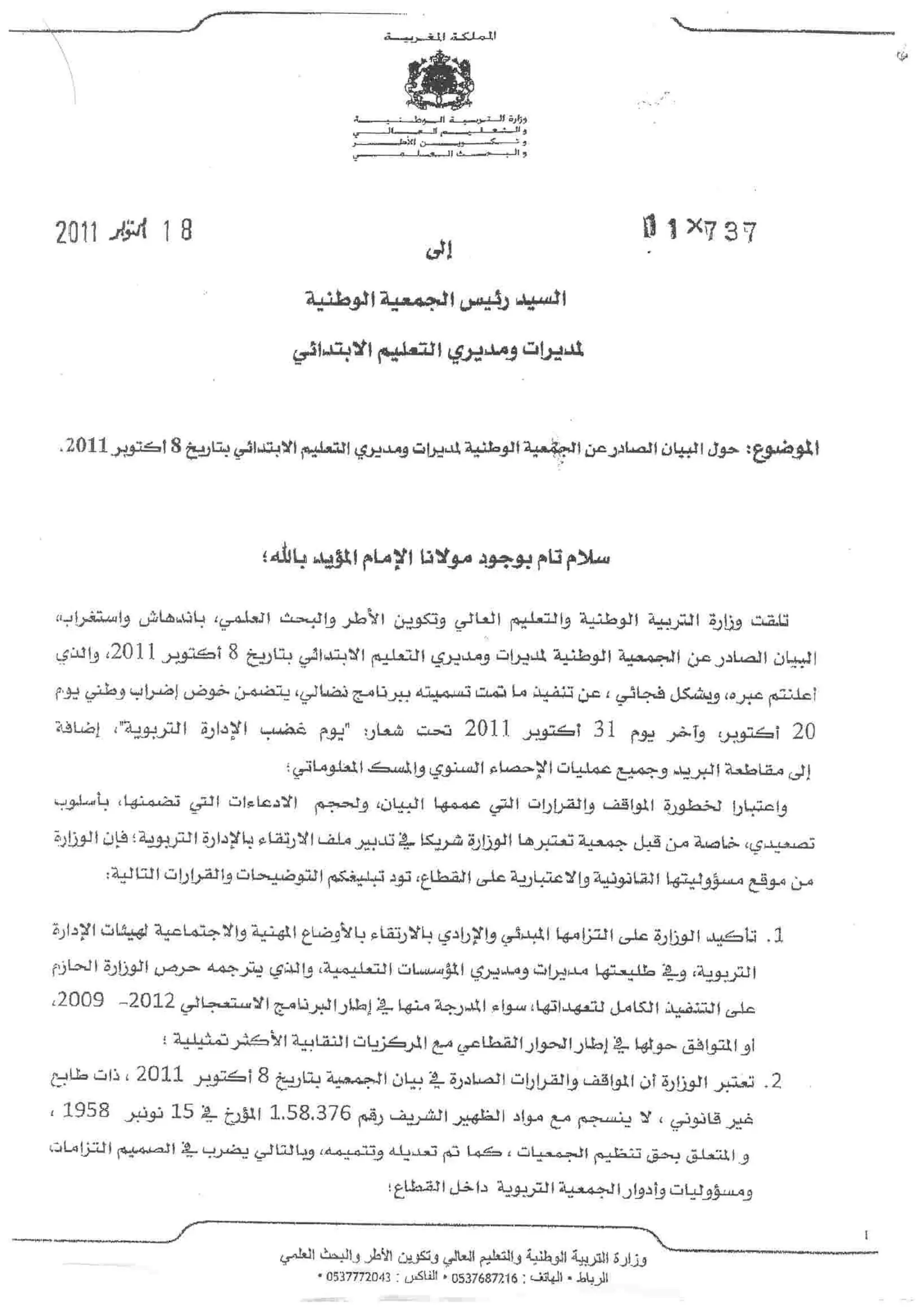 كلمة نيابة الناظور بمناسبة اليوم الوطني لجمعيات آباء التلاميذ