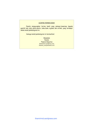 Modul ini menjelaskan dasar-dasar statika, termasuk pengertian gaya, pembagian gaya, serta metode analitis dan grafis dalam menyusun dan menguraikan gaya. Tujuan pembelajaran adalah agar mahasiswa memahami gaya-gaya dalam konstruksi dan perletakan tumpuan. Materi juga mencakup contoh soal dan aplikasi dalam teknik sipil.