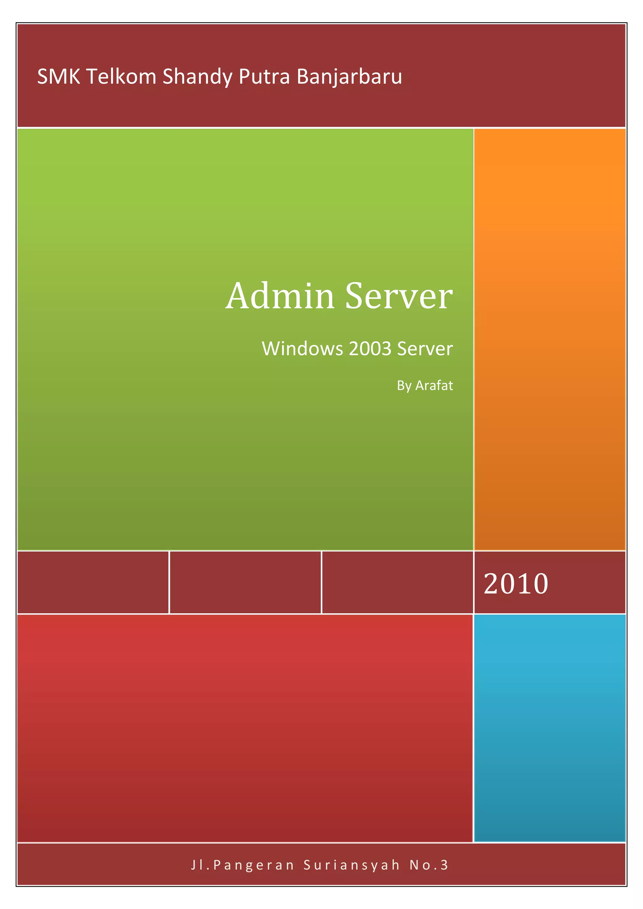 1) Dokumen tersebut membahas tentang pengaturan server di SMK Telkom Shandy Putra Banjarbaru meliputi pengaturan DNS server, DHCP server, Active Directory dan pengaturan user.