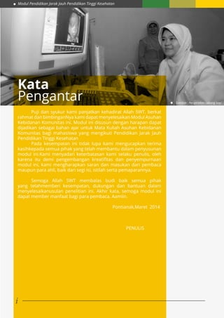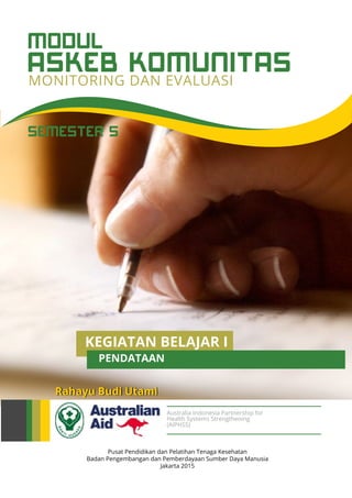 Modul ini membahas tentang pendataan, perencanaan, pelaksanaan, dan pemantauan hasil dalam kegiatan Pemantauan Wilayah Setempat Kesehatan Ibu dan Anak (PWS-KIA). Pendataan data merupakan tahap awal dan penting dalam proses monitoring PWS-KIA, yang mencakup jenis data, sumber data, dan pencatatan data."