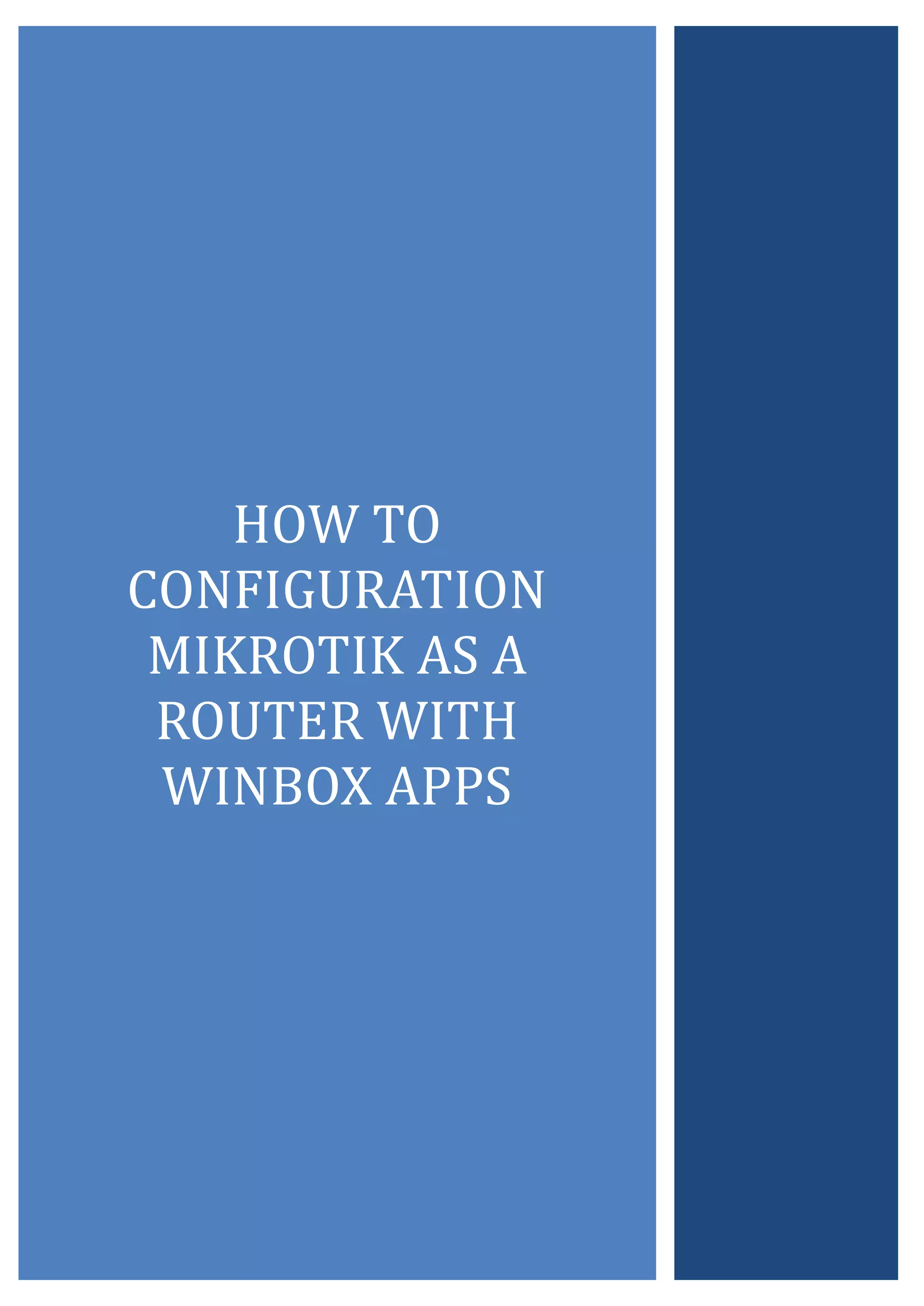 Dokumen ini menjelaskan konfigurasi Mikrotik sebagai router menggunakan aplikasi Winbox, mencakup sejarah, pengertian, fungsi, kelebihan, dan kelemahan Mikrotik. Selain itu, dijelaskan juga tipe lisensi, jenis-jenis perangkat Mikrotik, fitur-fitur yang dimilikinya, serta langkah-langkah praktis untuk melakukan konfigurasi jaringan lokal. Informasi ini berguna untuk ISP dan pengguna lain yang membutuhkan solusi jaringan yang handal.