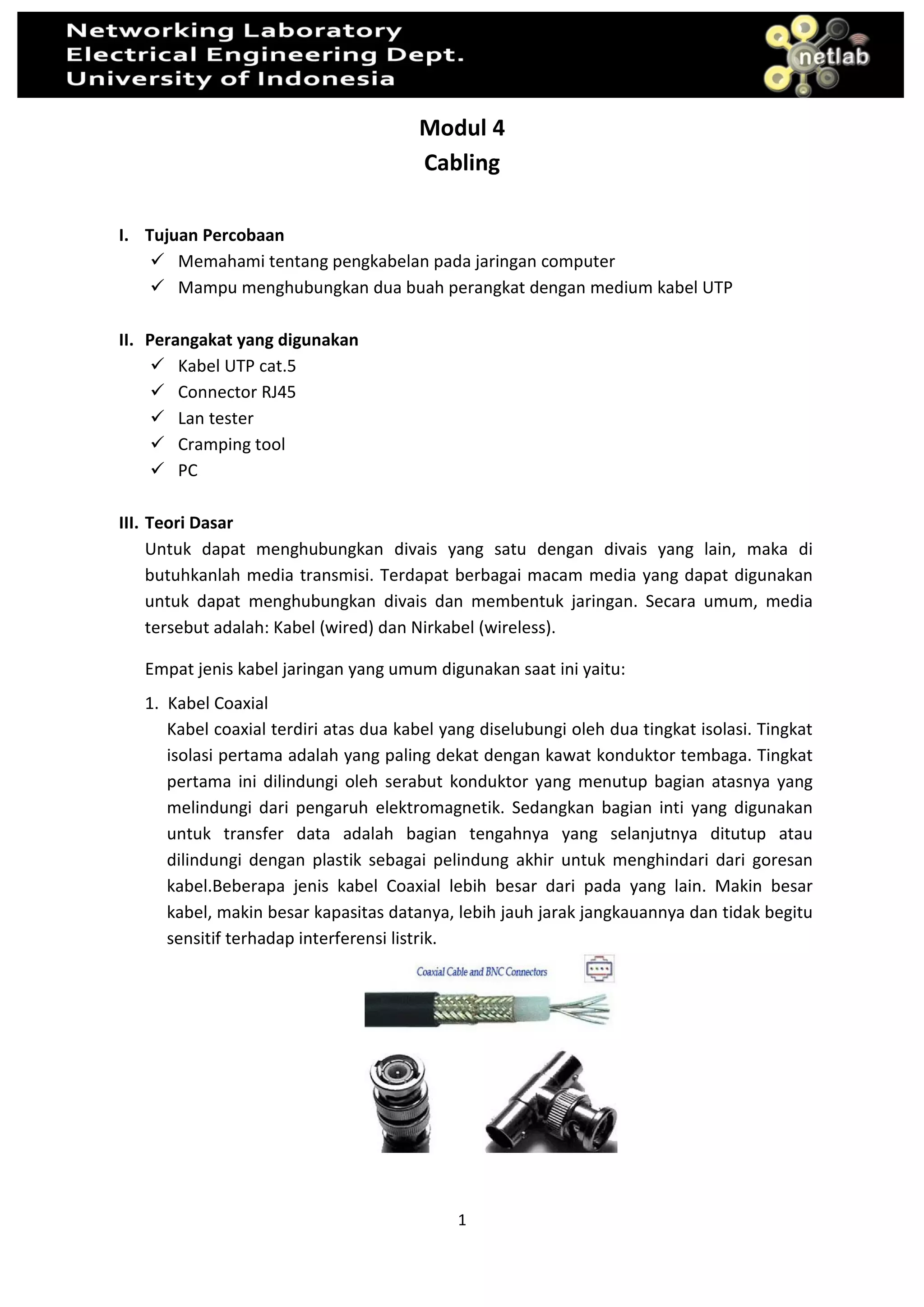 Empat jenis kabel jaringan yang umum digunakan saat ini yaitu: