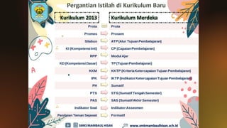 Dokumen ini menjelaskan proses perancangan pembelajaran dalam Kurikulum Merdeka, yang mengintegrasikan kompetensi inti (KI) dan kompetensi dasar (KD) menjadi satu kesatuan yang lebih efisien. Modul ajar, yang berfungsi sebagai panduan guru, memiliki struktur komprehensif dibandingkan dengan RPP, termasuk tujuan pembelajaran, asesmen, dan komponen lainnya untuk mendukung pencapaian kompetensi siswa. Selain itu, modul ajar dirancang untuk memperkuat elemen profil pelajar Pancasila pada setiap tahap perkembangan siswa.