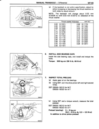 2. Adjusting toe-in to the specification of -1 to +1mm using a toe-in gauge.