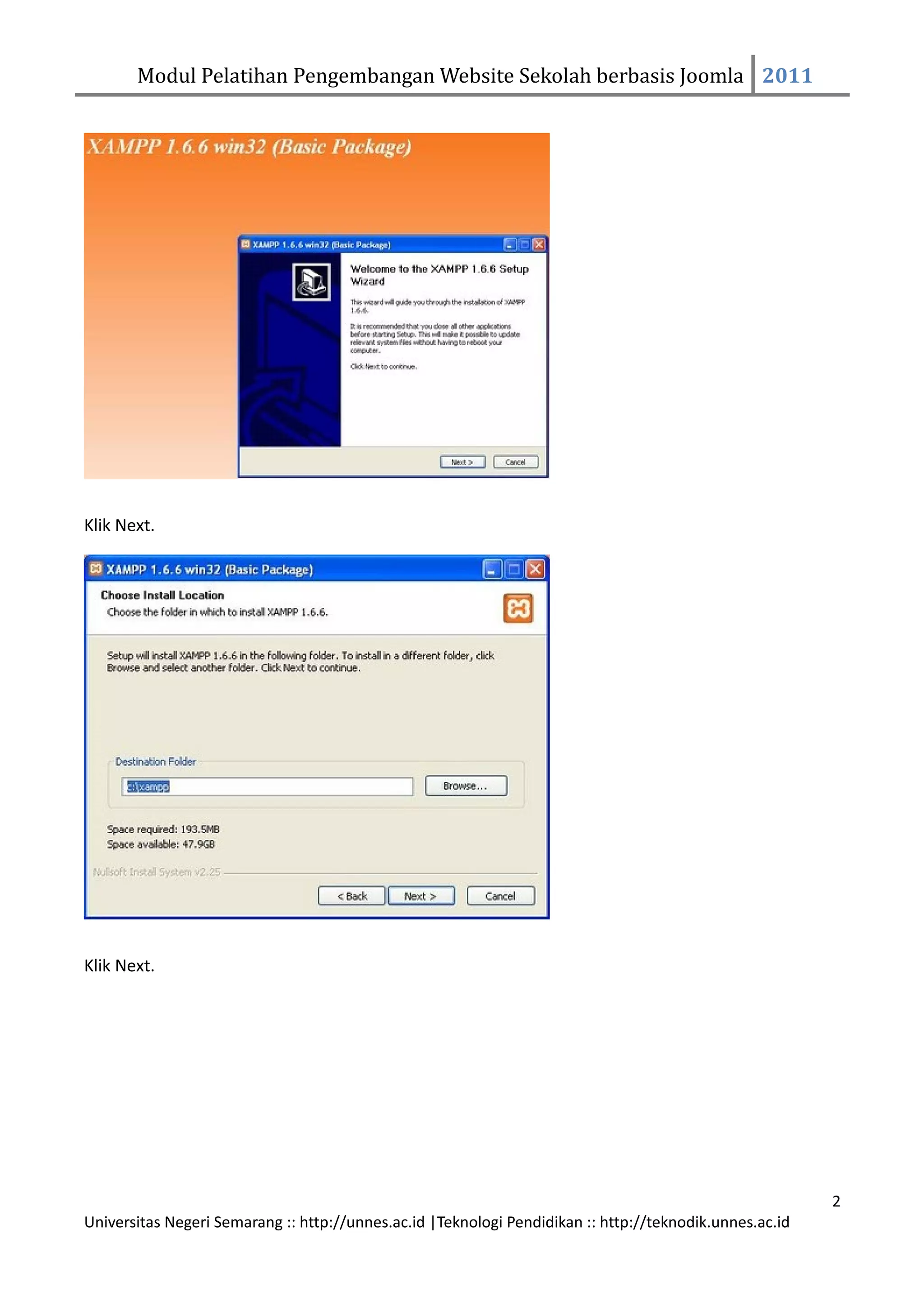 Dokumen ini adalah modul pelatihan tentang pengembangan website sekolah menggunakan Joomla dan XAMPP. Langkah-langkah mencakup instalasi XAMPP, pengaturan Joomla, serta konfigurasi kontrol panel dan menu di Joomla. Materi juga mencakup pengelolaan konten, template, dan modul di dalam Joomla.