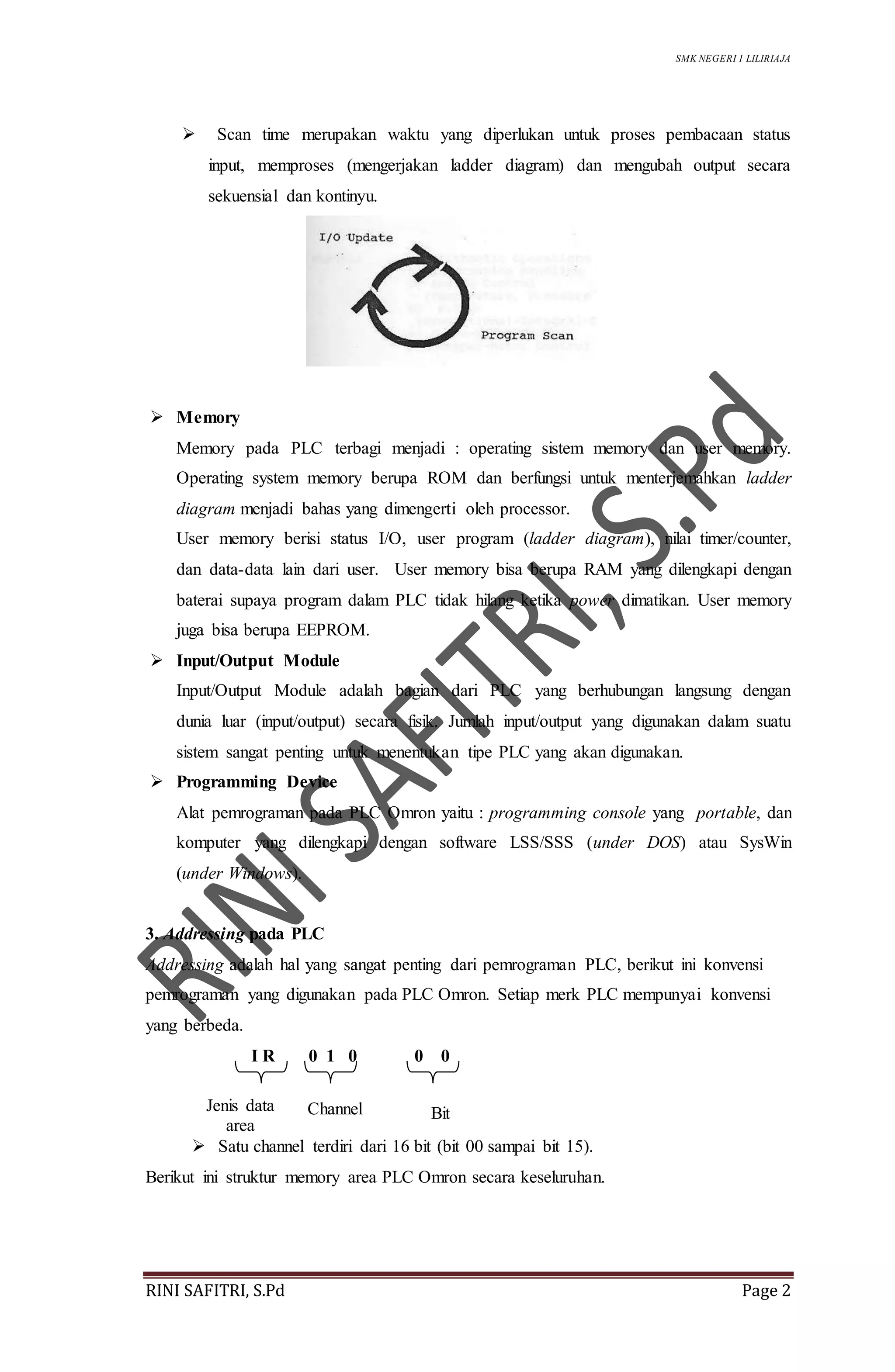 Dokumen ini menjelaskan tentang programmable logic controller (PLC) sebagai komputer yang digunakan untuk mengontrol proses industri, menggantikan sistem relai tradisional. Komponen utama PLC mencakup central processing unit (CPU), memori, dan modul input-output, serta mencakup metode pemrograman dengan bahasa ladder diagram. Selain itu, dokumen ini merinci instruksi dasar dan fungsi pemrograman yang digunakan dalam PLC untuk mengontrol perangkat dan melakukan komunikasi dengan berbagai sensor dan aktuator.