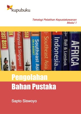 Dokumen ini adalah modul pertama dari tetralogi pelatihan kepustakawanan yang membahas pengolahan bahan pustaka di perpustakaan sekolah. Modul ini mencakup kegiatan akuisisi, klasifikasi, katalogisasi, dan inventarisasi, serta dilengkapi dengan panduan praktis untuk guru yang tidak memiliki latar belakang pendidikan kepustakawanan. Selain itu, dokumen ini juga menyoroti pentingnya pengembangan perpustakaan sekolah di Indonesia sesuai dengan Undang-Undang No. 43/2007.