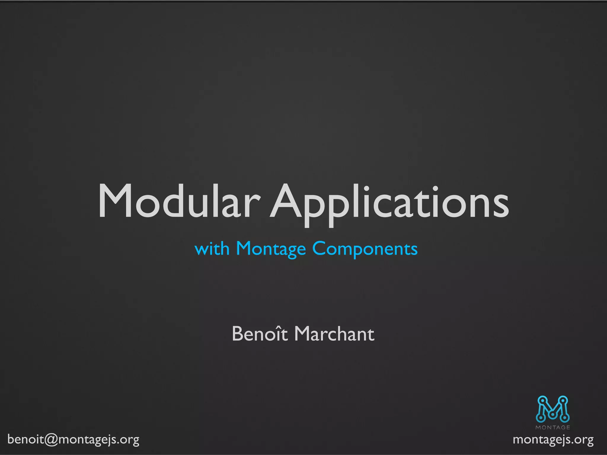 The document discusses the creation of modular applications using Montage components, emphasizing concepts like data binding, component encapsulation, and MVC structure for efficient application development. It also contrasts HTML5 applications with native applications in terms of user experience, development time, and cost. The document includes technical details about the component architecture, event handling, and object serialization within a web application framework.